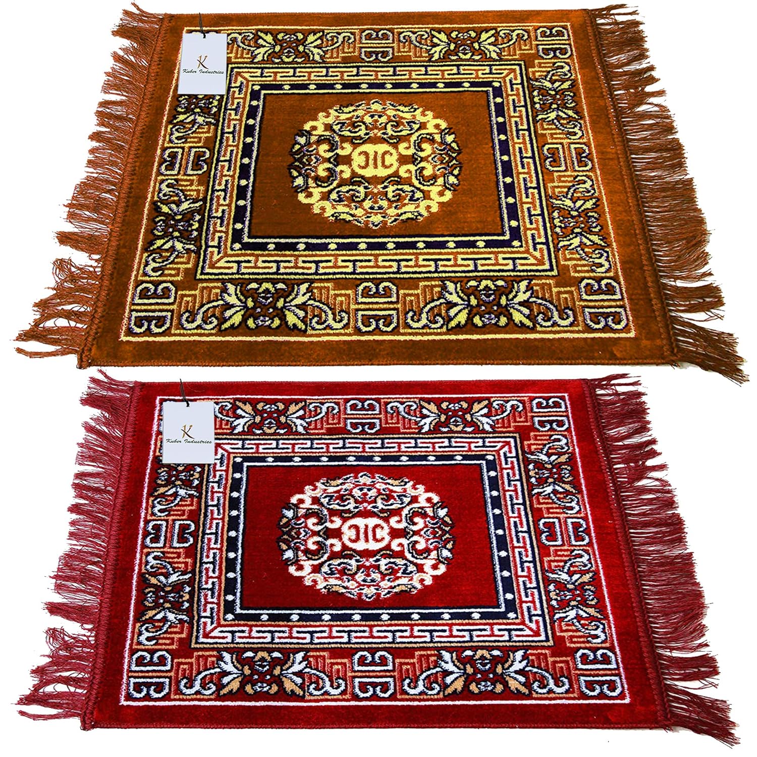 Kuber Industries 2 Pieces Velvet Prayer Mat/Aasan/Pooja Mat/Meditation Mat/Multipurpose Velvet Rug Mat 2 Ft X 2 Ft (Gold & Maroon) CTKTC33952