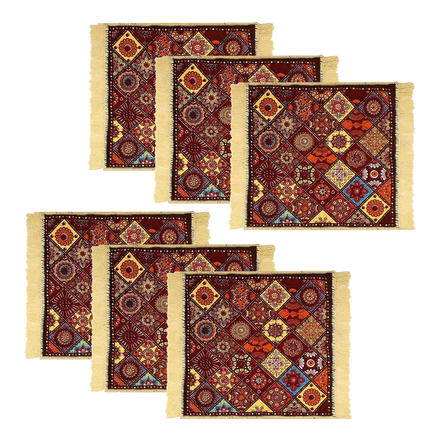 Kuber Industries Pack of 6 Prayer Mat | Velvet Aasan Mat | Meditation Prayer Carpet Mat | Pooja Aasan Mat | Rangoli Square Prayer Mat | Traditional Prayer Mat | Small | Multicolor