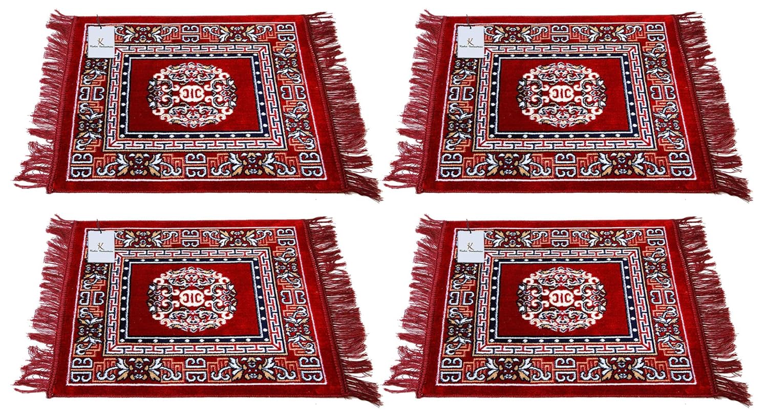 ✅ Package contains (Set of 4) puja mats for sitting | Colour – Maroon | Product Dimensions – 60 x 60 cm