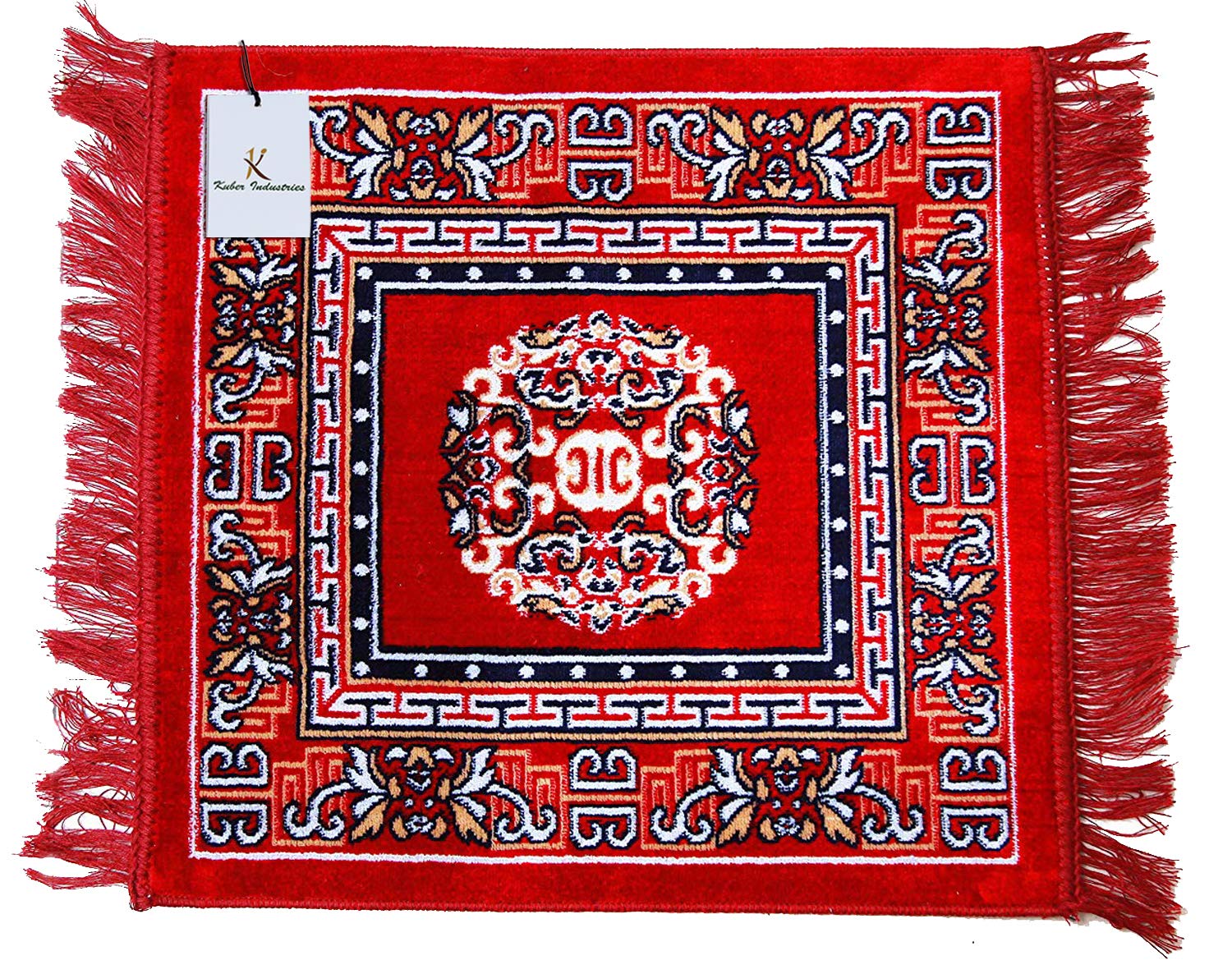 Kuber Industries Traditional Carpet/Pooja Mat|Square Shape & Soft Velvet Material|Maditation Prayer Rectangular Mat|Size 60 X 60 Cm (Red)