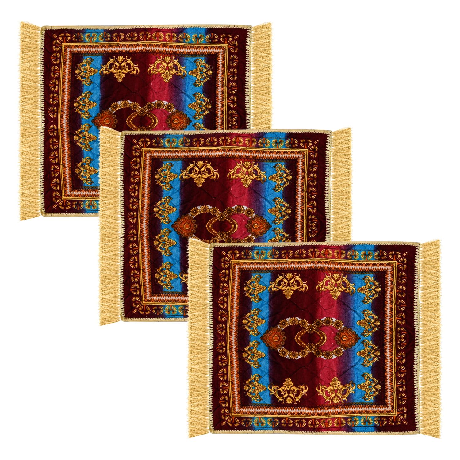 Kuber Industries Velvet Prayer Mat | Meditation Prayer Carpet Mat | Pooja Aasan Mat |Traditional Flower Square Prayer Mat | Small | Pack of 3 | Multicolor
