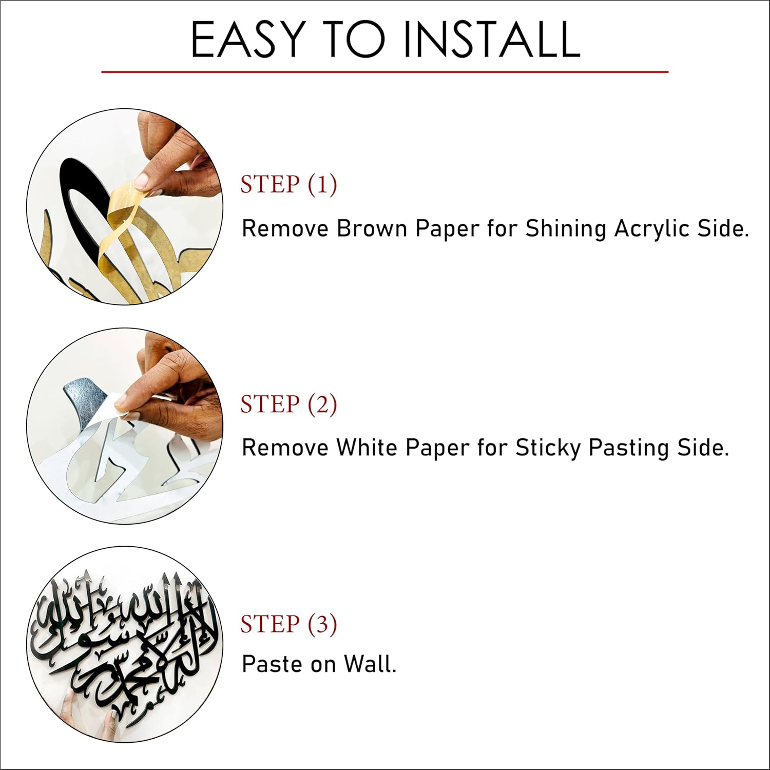 Be the first to review “La ilaha illallah Muhammad Rasool Allah Islamic Wall Frame Black Shining Acrylic Wall Art | Islamic Ramadan Wall Decorations | Arabic Calligraphy (12 inch x 11 inch)-Self-Adhesive” Cancel reply