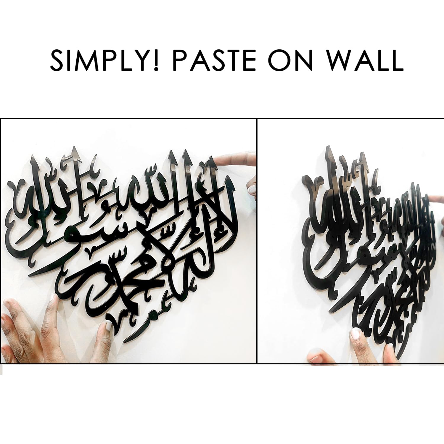 La ilaha illallah Muhammad Rasool Allah Islamic Wall Frame Black Shining Acrylic Wall Art | Islamic Ramadan Wall Decorations | Arabic Calligraphy (12 inch x 11 inch)-Self-Adhesive