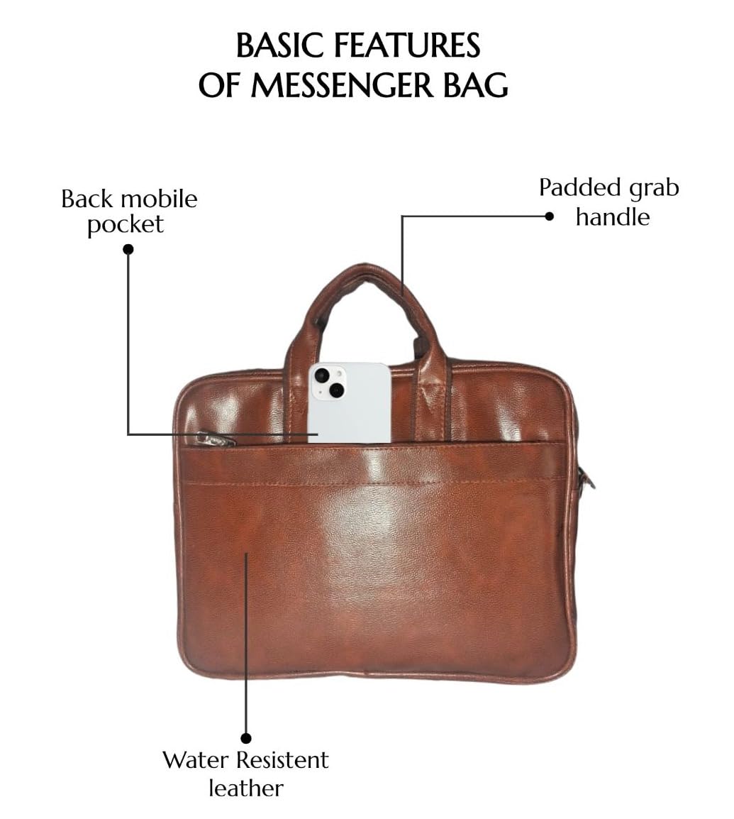 Leather Messenger Bag for man & women – 15.6 Inch Laptop Bag For Office Use & Travel Handbag with Adjustable Strap, Multi-pocket for Mobile, Documents & Tab, Waterproof & Durable