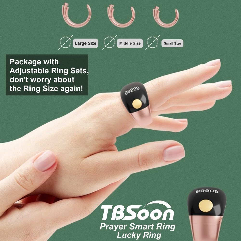 Lightweight Tasbih Smart Ring, Tasbeeh Counters, Prayer Electronic Rosary, Forgiveness ring, Smart Watch, Eid al-Fitr Eid al-Adha Ramadan Gift for men women, TBSoon iqibla zikr ring Rose Golden