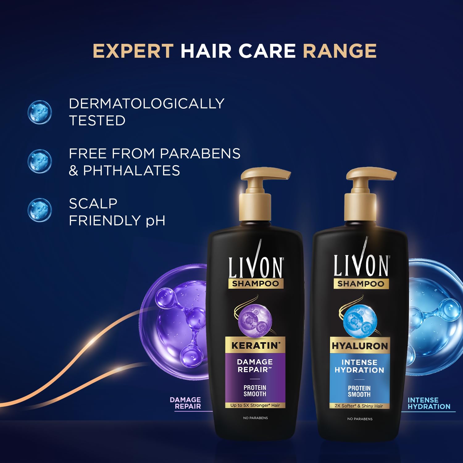 Livon Hyaluron Shampoo for Women & Men | Hydrates Dry & Dull Hair | 2x Soft & Shiny Hair | No Parabens | 650ml