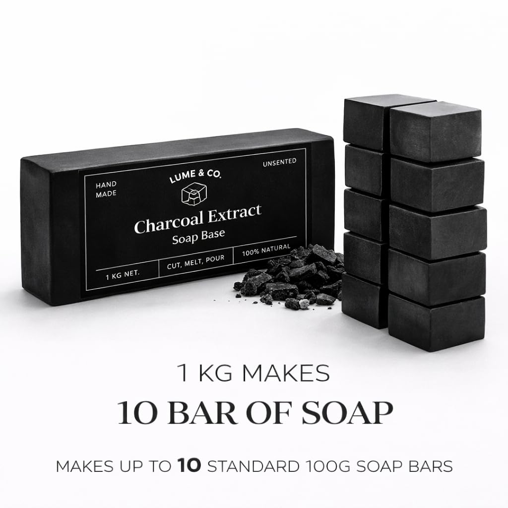Create your own handmade soaps with the Lume & Co. Activated Charcoal Melt and Pour Soap Base 1Kg Bar. This unscented glycerin soap base is designed for DIY soap making and is ideal for makers who want the freedom to add their own fragrance oils, essential oils, herbs, colours or skincare ingredients. The activated charcoal base gives your soaps a premium dark appearance and makes it a popular choice for modern handmade soap bars. This charcoal soap base is SLS free and paraben free, making it a preferred option for customers searching for cleaner soap making supplies. The melt and pour format is simple to use- just cut, melt, customize and pour into moulds. Whether you are a beginner, hobby soap maker or a small business creating handmade soaps for sale, this 1kg bar offers convenience, flexibility and value. Ideal for face and body soap projects, gift soaps, customized skincare bars, festive hampers and boutique handmade soap collections.