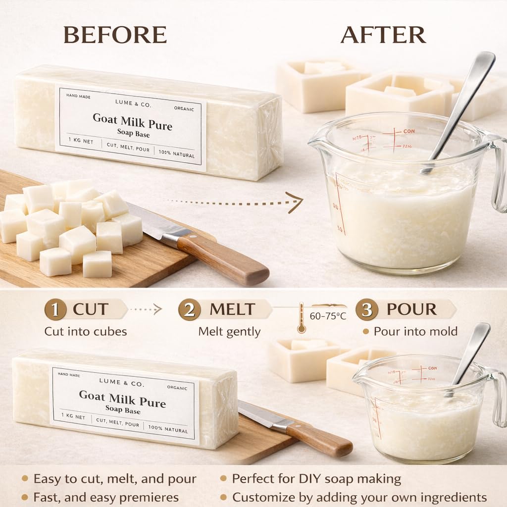 Lume & Co.™ Premium Goat Milk Melt & Pour Soap Base 1Kg – Natural Goat Milk Soap Base for DIY & Handmade Soaps | SLS/SLES & Paraben Free | Unscented, Moisturizing, Skin-Friendly Formula