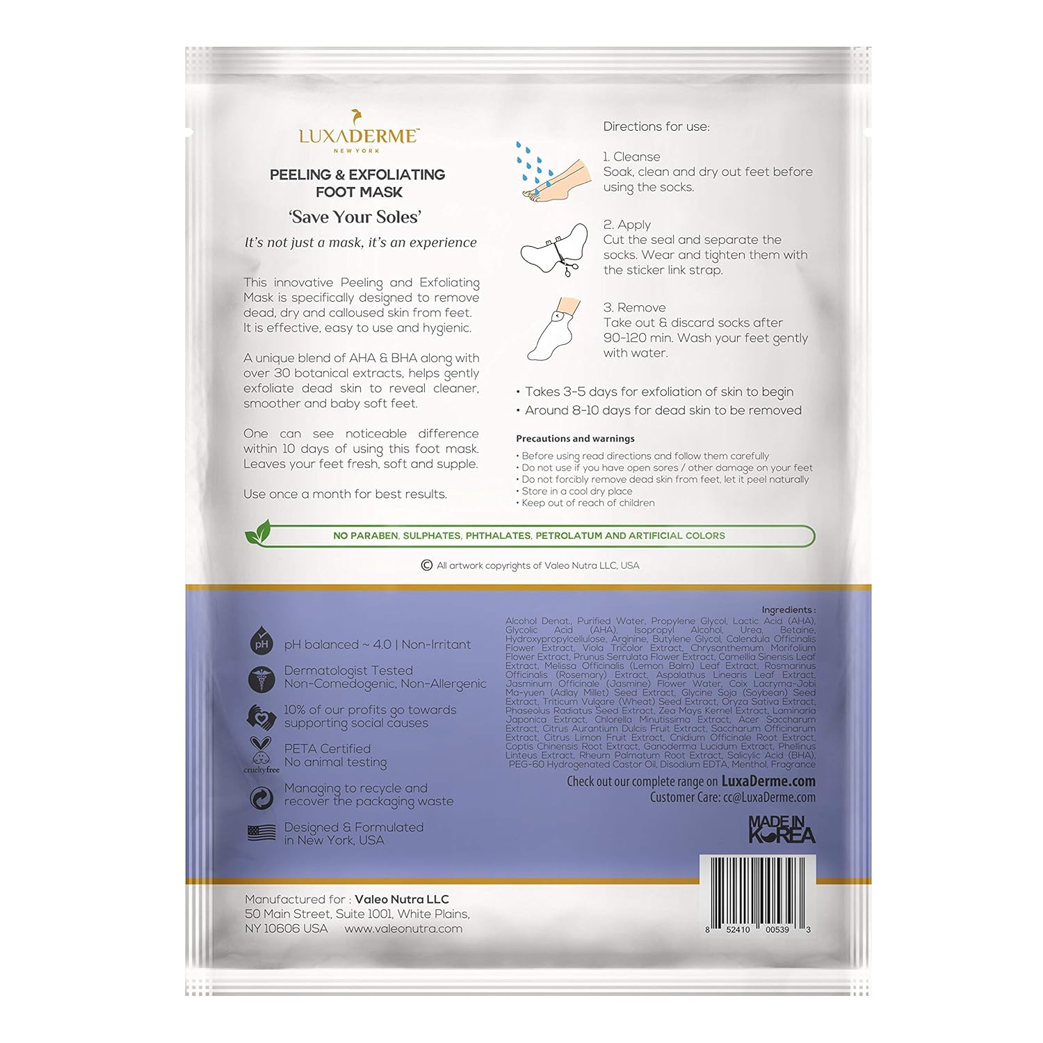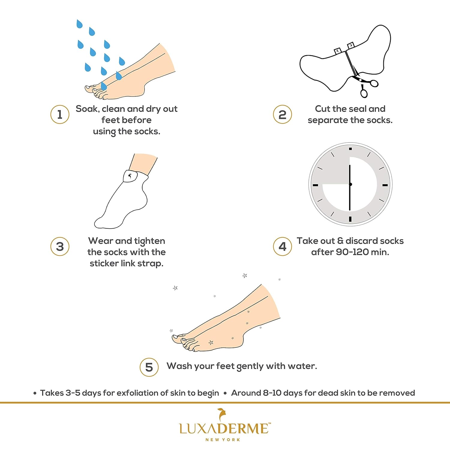 LuxaDerme Peeling & Exfoliating Foot Mask | Made in Korea Foot Peeling Mask with Glycolic, Salicylic & Lactic Acids | Dead Skin & Callus Remover for Baby-Soft Skin | Vegan Korean Skincare for Men & Women