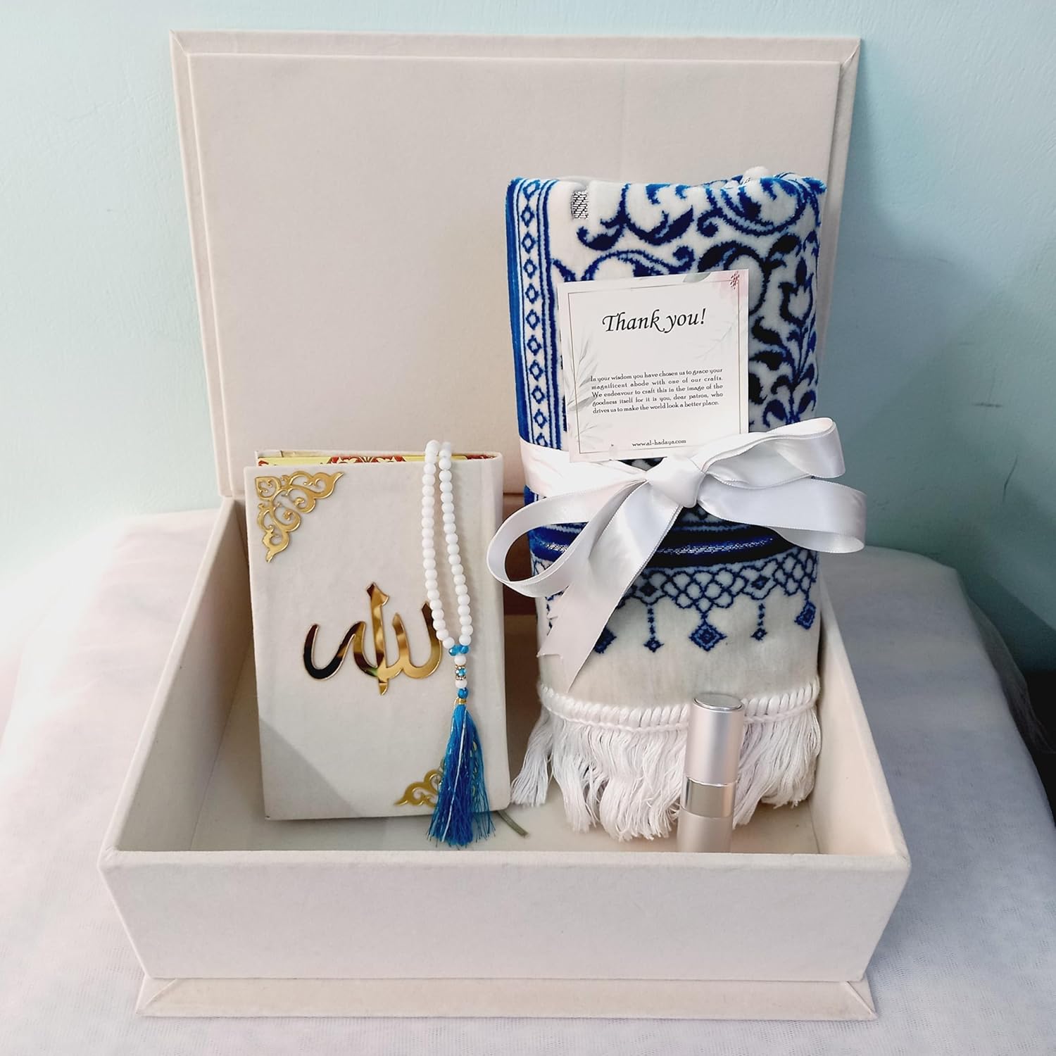 Be the first to review “Luxurious Velvet Quran & Turkish Imported Rectangular Prayer Mat | Islamic Gift Set | Pearl White | Large Size Quran Colour Coded Pages. Size of Box- 37 * 27 * 11 CM” Cancel reply