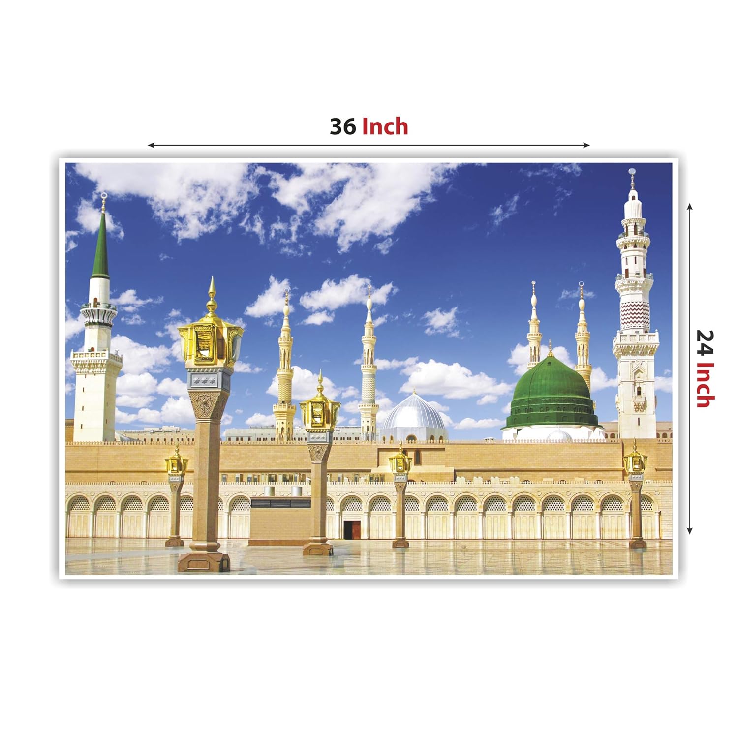 Madina – Masjid E Nabawi Gumming Vinyl Without Frame for Islamic Wall Vinyl Pack of 1 Pcs Size 24 Inch X 36 Inch* Multicolour