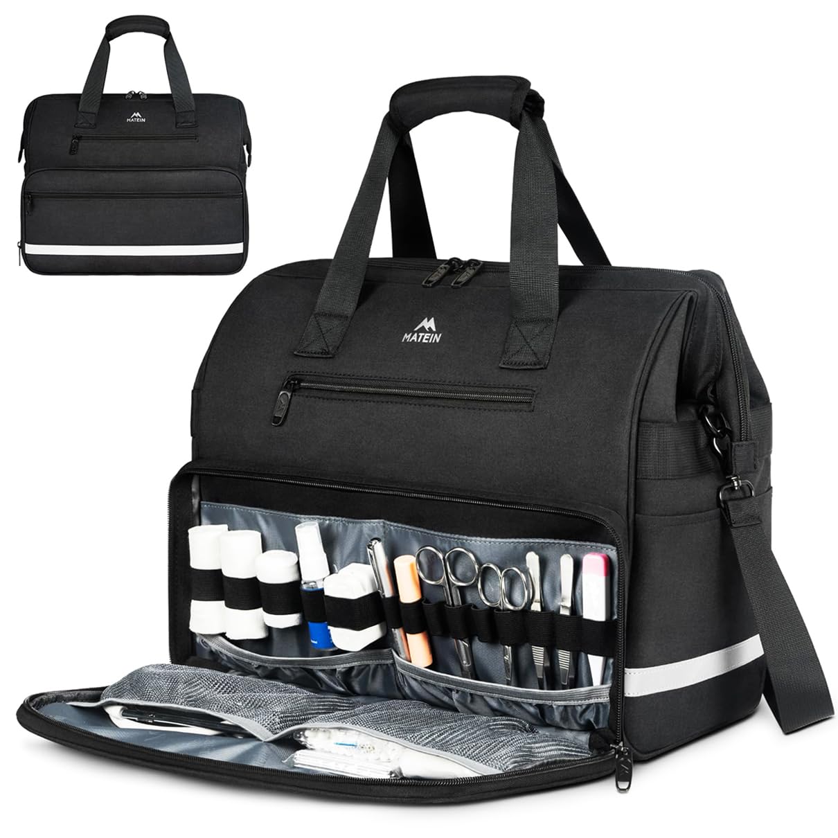 MATEIN Medical Bag, Large Water-Resistant First Aid Bags with Many Pocktets for Nursing, Portable, Purple Black