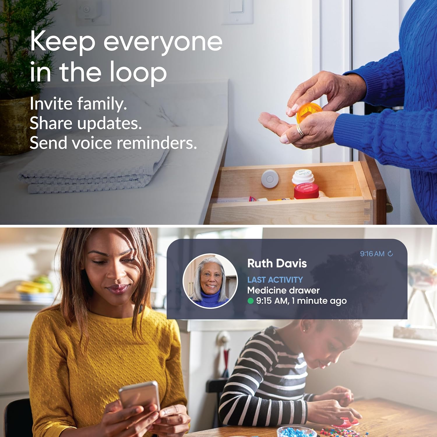 FALL DETECTION AND CAREGIVER NOTIFICATIONS – Tags detect unusual movement patterns and fall events, sending instant alerts to your trusted Care Circle; Tag alert sensitivity is adjustable in the app, and is ideal for seniors, caregivers, and families seeking a modern, easy-to-use medical personal safety alarm.