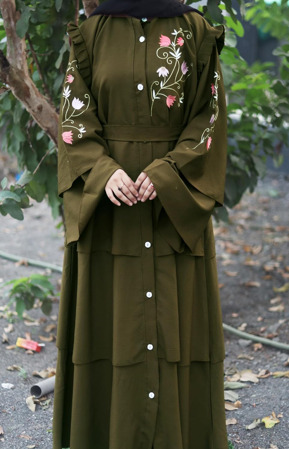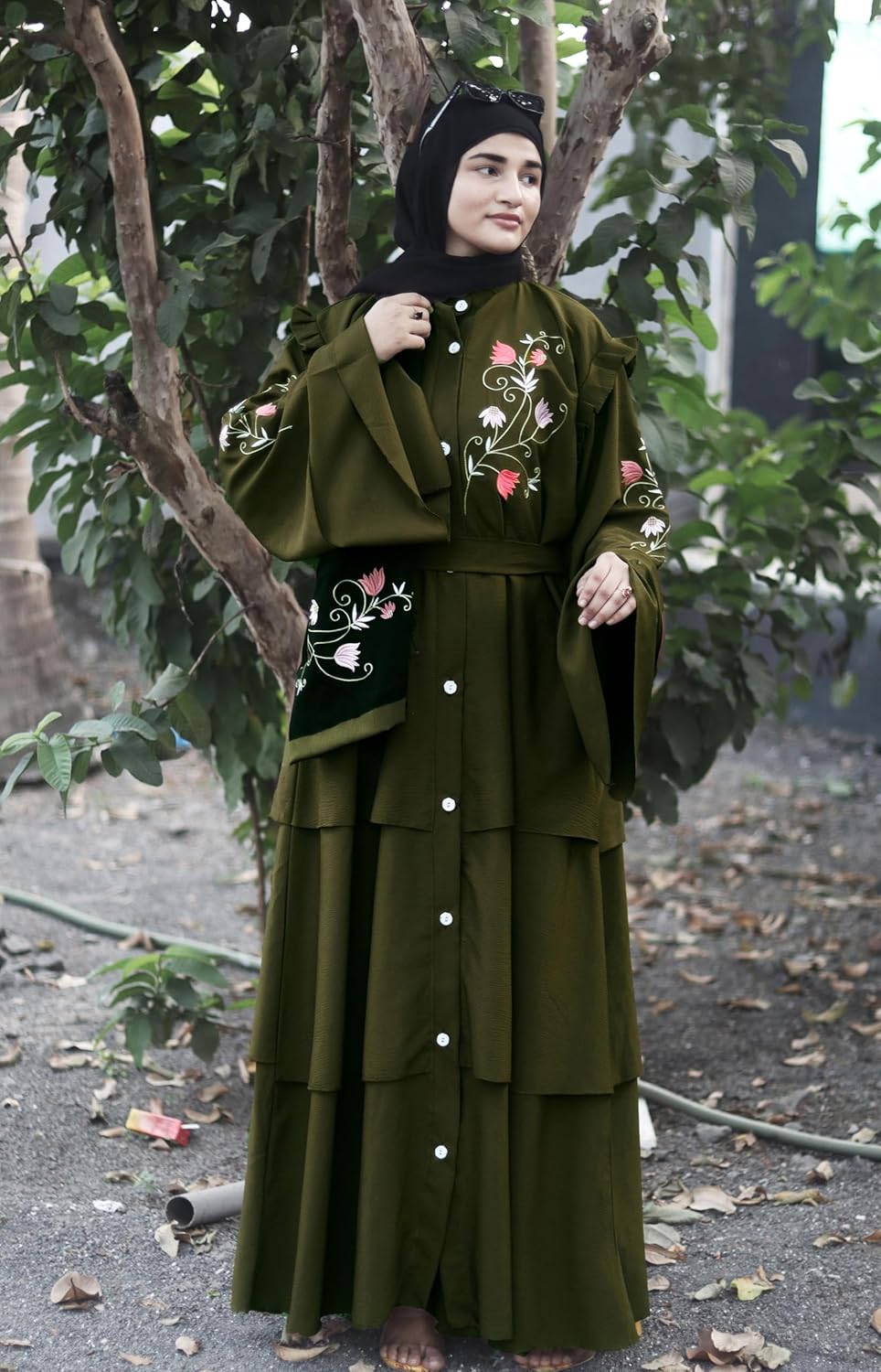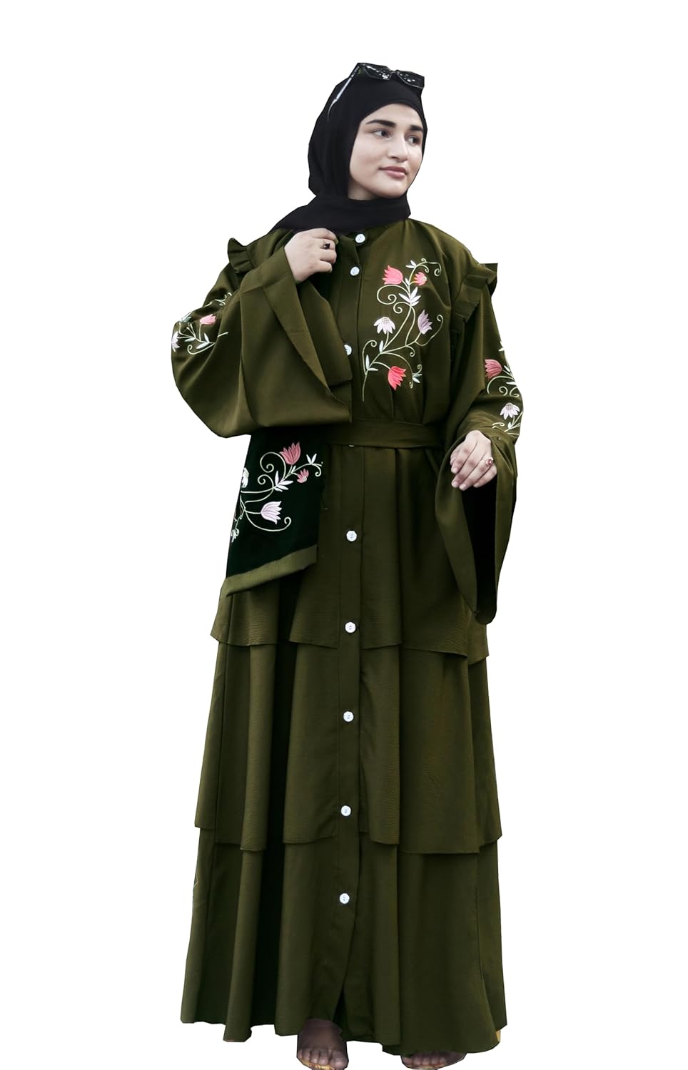 Stunning blend of tradition and contemporary style Islamic Fashion, designed to provide elegance and modesty Embroidrey Work Naqab and Hijab for today’s modern woman. The Mehndi abaya Burqa with embroidery work represents not only modesty but also personal style and cultural identity. It is a versatile piece that reflects the wearer’s personality while adhering to traditional values in Stylish Dubai Abaya Islamic fashion