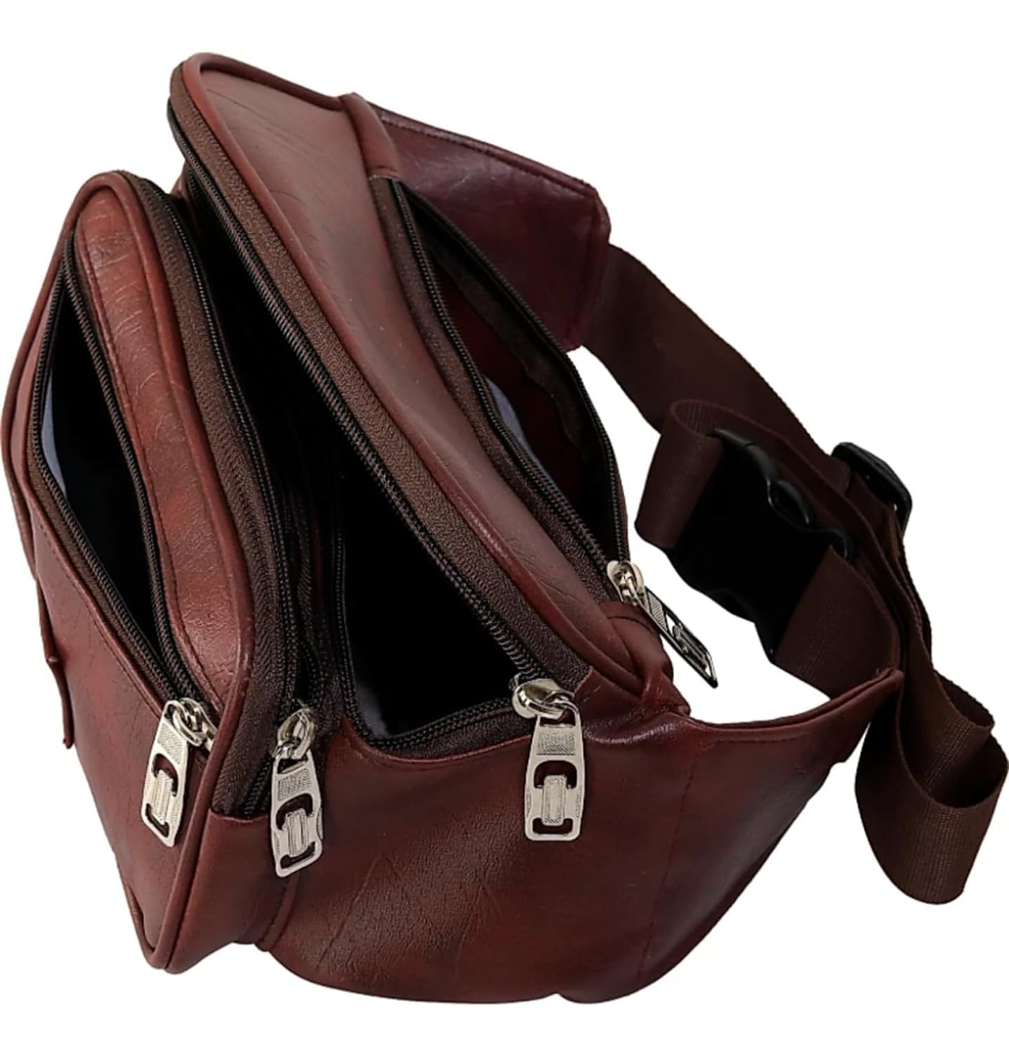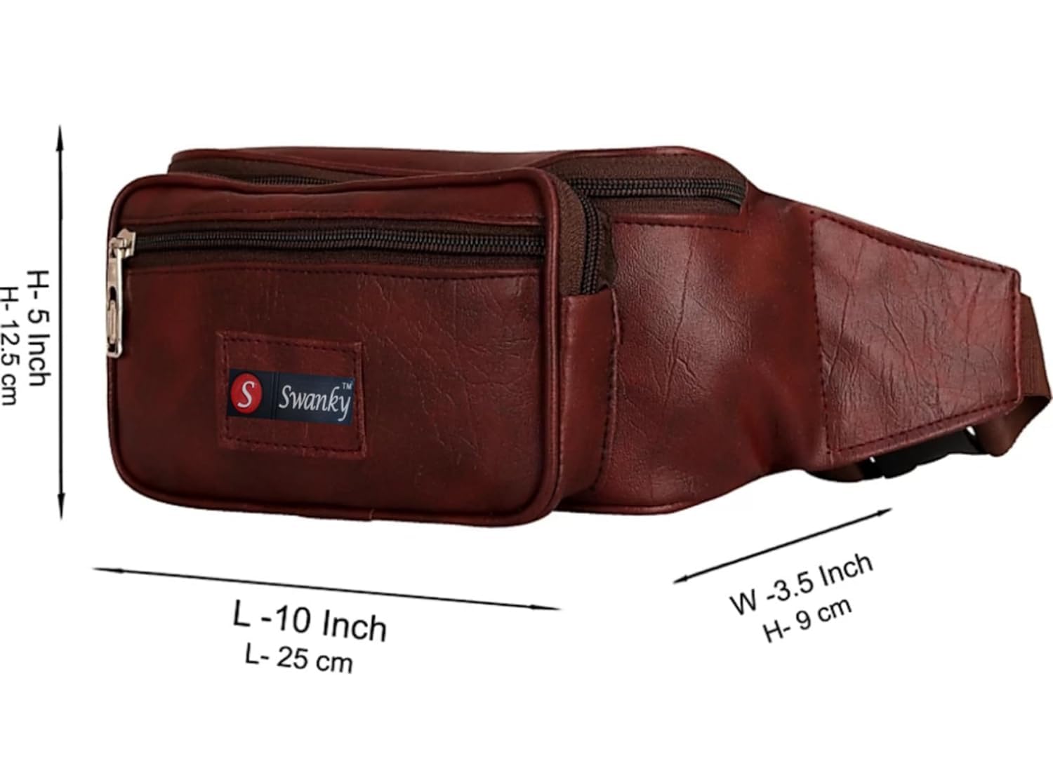 Stylish & trendy Brown coloured Waist bag from the house of Swanky, designed to carry all small and regular accessory like cards, keys, earphones, power bank, coins, pen, Money,Passport,Card holders and other valuables etc. Made with high quality soft Genuine PU,Foam Leather. It has Adjustable Strap to fit waist kamar bags of all sizes. This waist pouch has 4 zipper pockets in the front and 1 zipper pocket at back.It also has one pouch at front for keeping mobile phone etc. This Waist pouch is ideal for men and women, gils and boys for travelling. Avoid contact with moisture and water.Disclaimer : Product color may slightly vary due to photographic lighting sources or your monitor settings. Safety Instructions : Keep away from pointed objects and extreme heat.