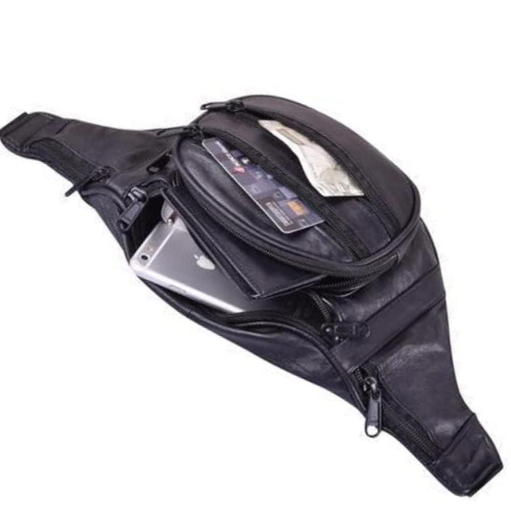 Men’s and Women’s Ahram/EHRAM/Ihram Belt | Stylish Leather Waist Bag | Perfect for Documents, Money, and Phone | Adjustable Strap | Black | One Size Fits All