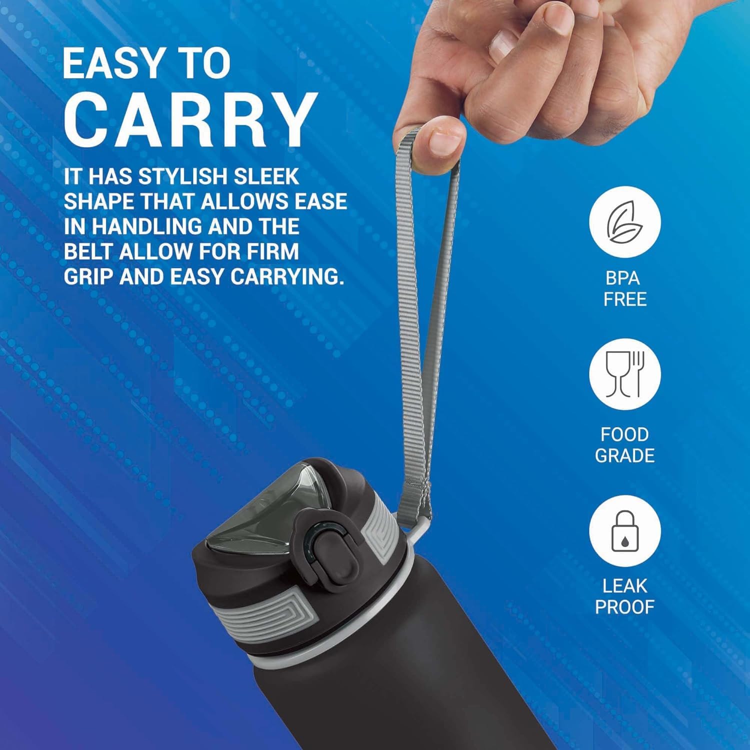 COMFORTABLE HANDLE – Easily carry your water bottle wherever you go with the attached strap, keeping it always within reach.