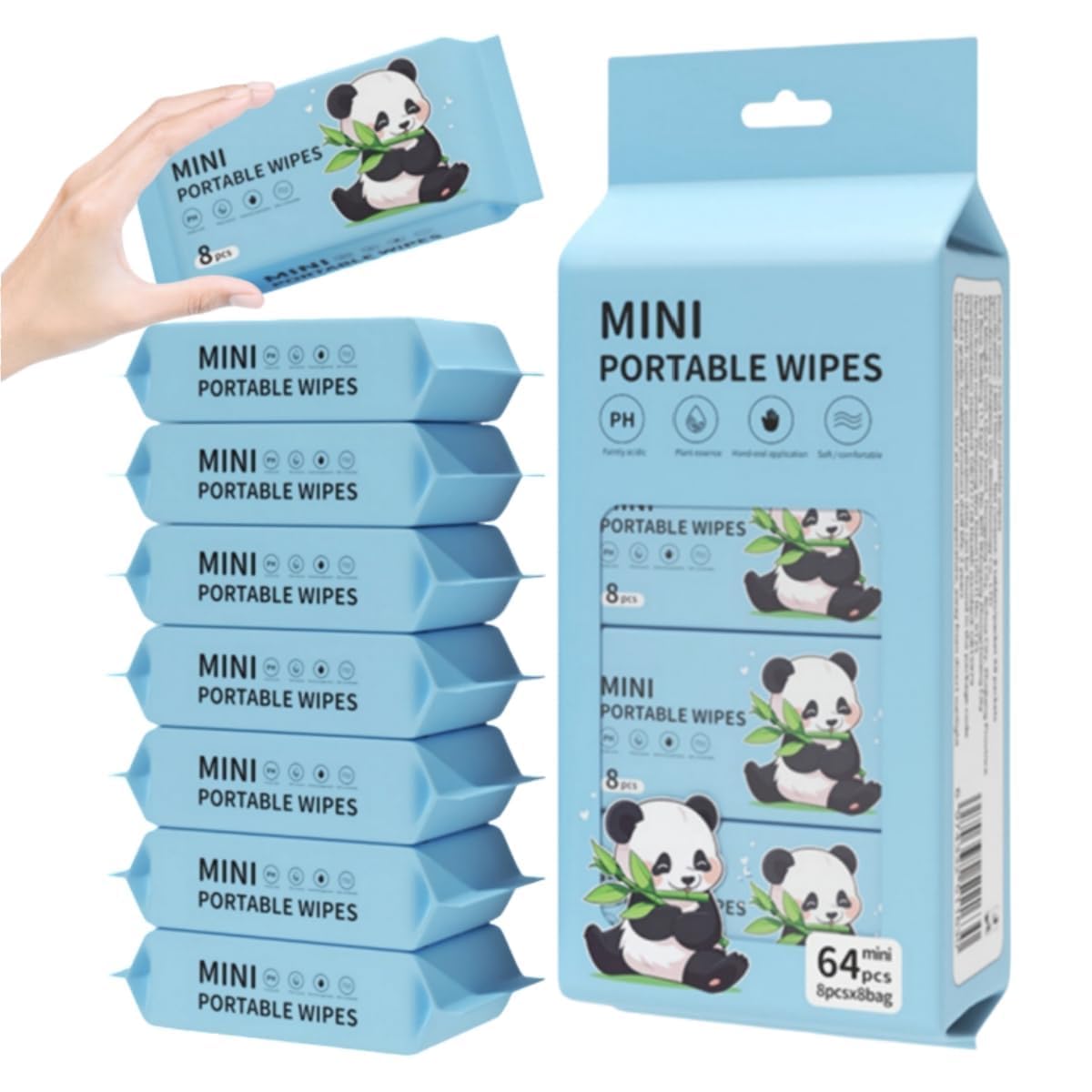 Stay clean and fresh wherever you go with these Mini Portable Wet Wipes (Pack of 1, 8 Wipes). Made for kids and adults, these travel-size wipes are easy to carry and perfect for everyday hygiene—whether you’re at school, office, on a road trip, or dining out. The gentle, pH-balanced formula makes them suitable for regular hand and skin cleaning. Keep one pack in your pocket, handbag, diaper bag, or car for quick clean-ups anytime you need. These mini portable wet wipes are the perfect companion for maintaining cleanliness and freshness wherever life takes you. Designed for both kids and adults, this convenient pack contains 64 individual wipes divided into 8 compact packs, making them ideal for travel, outdoor activities, or everyday use. Each wipe is formulated to be gentle on skin whilst effectively cleaning hands and skin surfaces. The travel-friendly size ensures you can easily slip a pack into your bag, pocket, or car glove compartment, so you’re always prepared for unexpected messes or quick refreshes. The adorable panda design on the packaging adds a touch of charm whilst the compact dimensions (9cm x 20cm) make storage effortless. These wipes feature a balanced pH formula that’s suitable for sensitive skin, ensuring comfort with every use. Whether you’re at the park, commuting, dining out, or simply need a quick clean-up at home, these portable wipes provide a reliable solution. The resealable packaging helps maintain moisture and freshness, ensuring each wipe is ready when you need it. Keep your hands and skin fresh and clean at all times with this practical multi-pack that offers excellent value and convenience for the whole family.