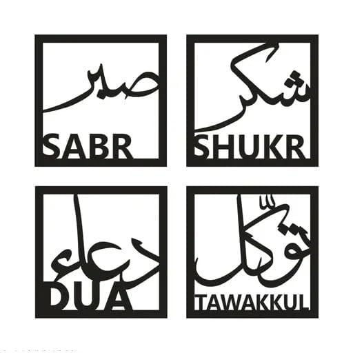 MOSCOW Wings Islamic Wall Art Set, 4 Pieces Square Frame with Arabic Calligraphy – Sabr, Shukr, Dua, Tawakkul, Black