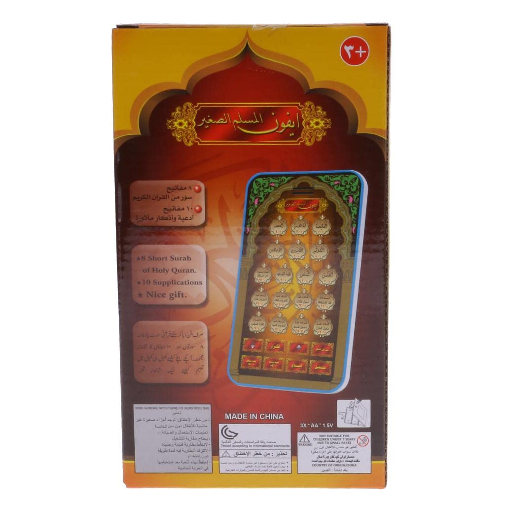 Brand New and High Quality Product.Material: PVCMini Educational Machine Tablet for learning Arabic Koran.Batteries: 1.5VV (Not Included)8 short of holy , 10 supplications Arabic Language.Indeed an interesting, musical, interactive, battery operated toy gift.Recommended for children above 3 years old.An educatioanl birthday toy gift for your early learning