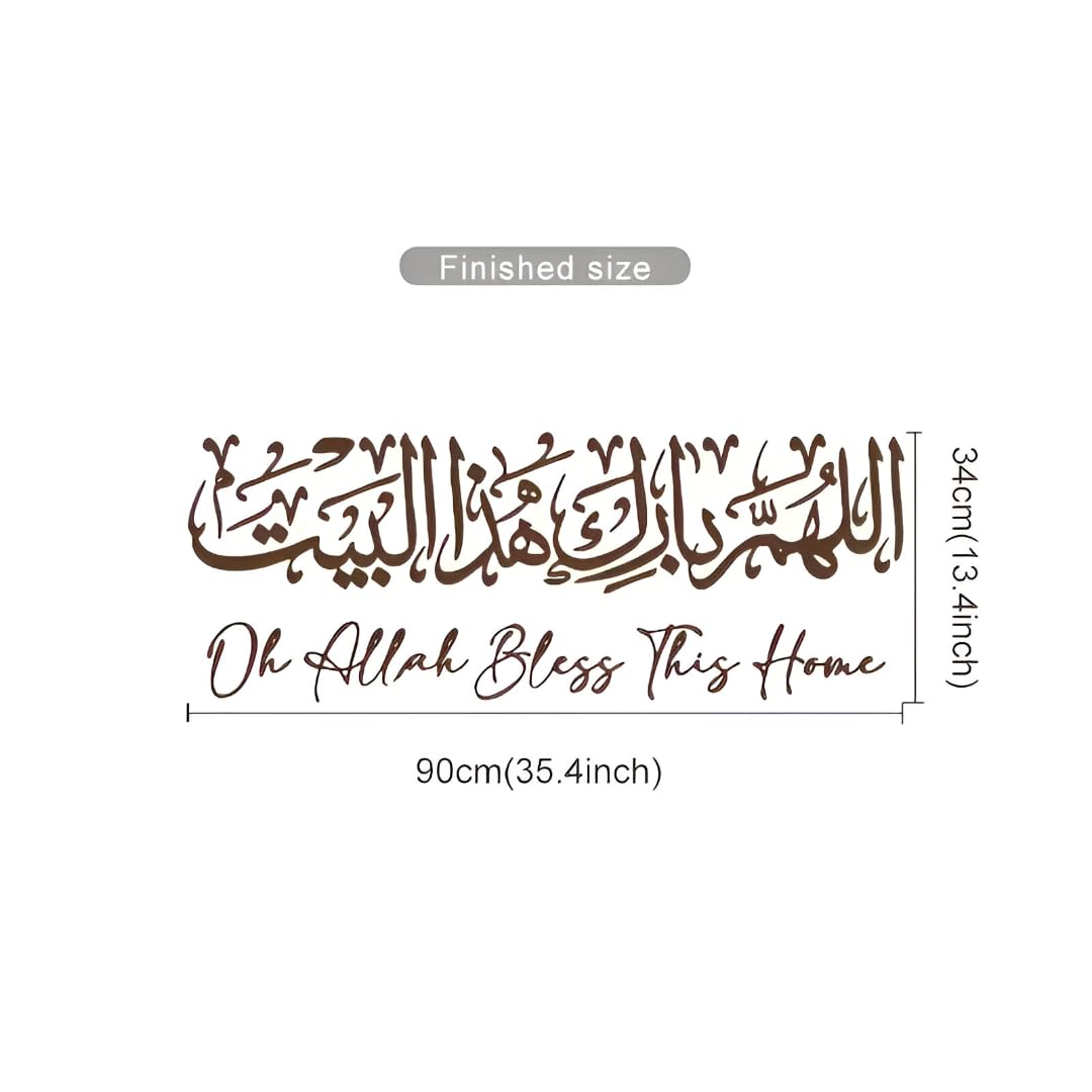 Oh Allah Bless This Home Wall Sticker Islamic Calligraphy | Arabic Dua Wall Decal for Living Room Bedroom Entrance | Peel and Stick Muslim Home Decor | Large Vinyl Wall Art Size (90 × 34 cm)