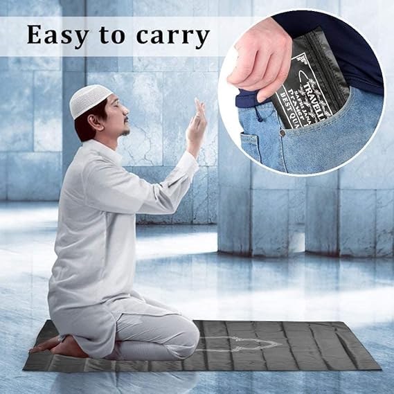Opalite Polyster Water Proof Pocket Friendly Safri Janamaz Travel Prayer Mat – Black, Full Size
