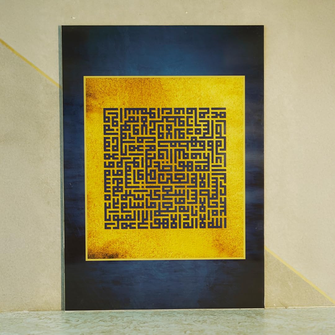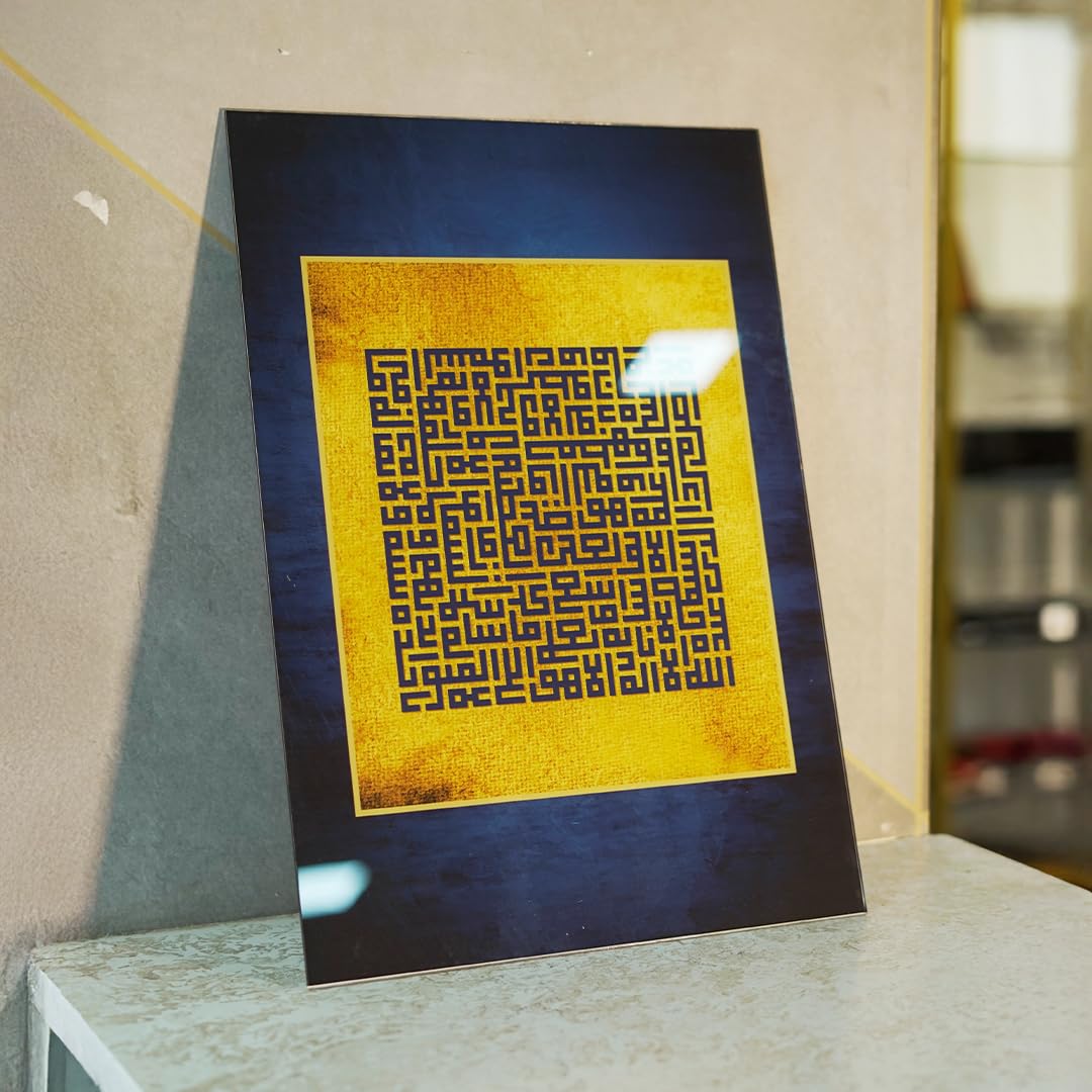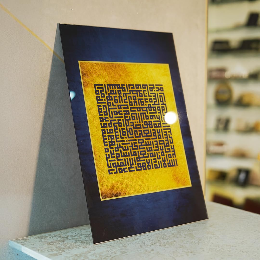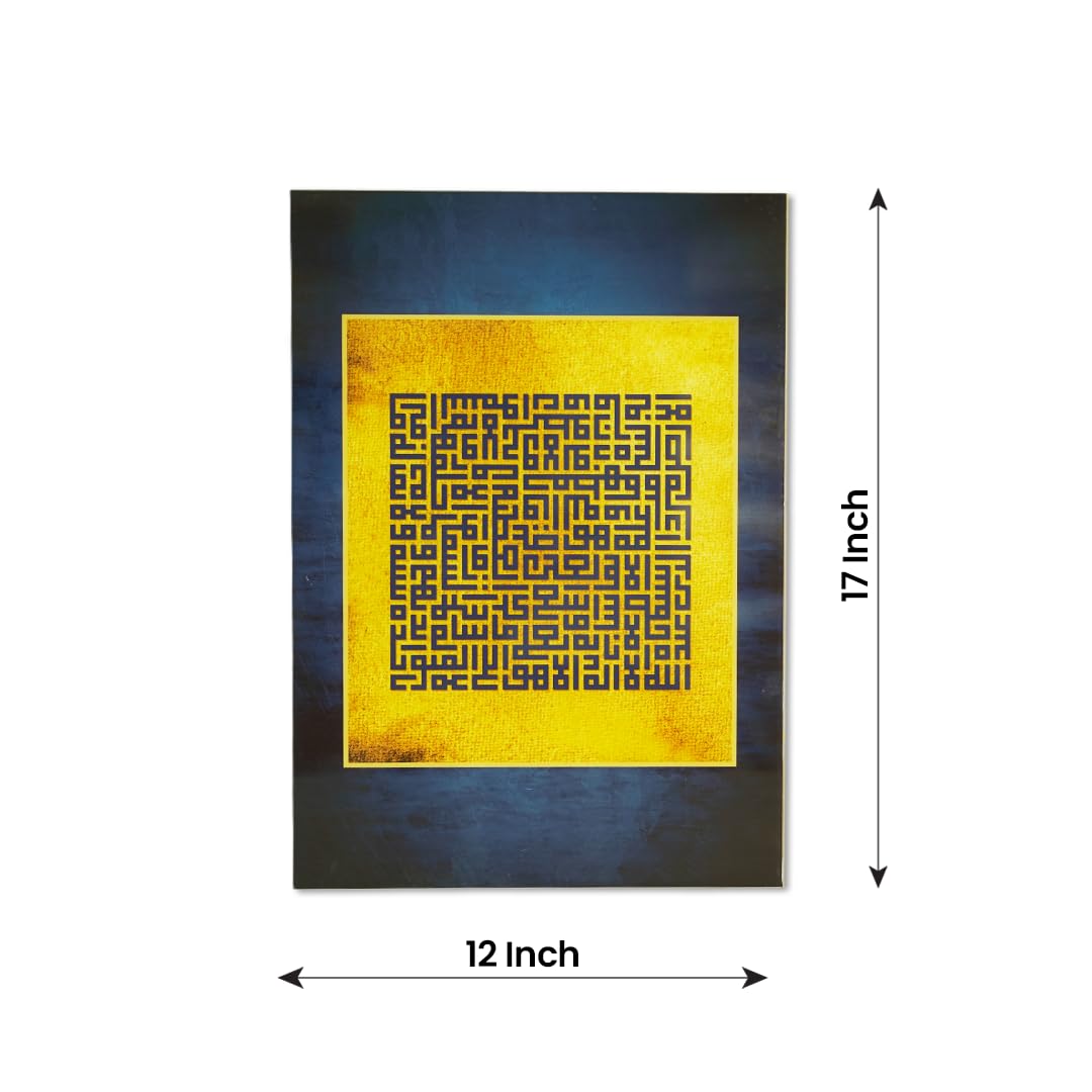 Elevate your prayer space with this exquisite Ayatul Kursi wall frame, featuring timeless Kufic Arabic calligraphy artistry. Crafted from premium 3mm thick acrylic with a sophisticated glossy finish, this stunning piece measures 30.5 x 43.2 cm (12 x 17 inches), making it a striking focal point for any room. The elegant Kufic script, known for its angular geometric beauty, renders the profound verses of Ayatul Kursi in a contemporary interpretation that bridges classical Islamic art with modern aesthetics. The durable acrylic construction ensures lasting brilliance while the meticulous craftsmanship brings out the intricate details of the calligraphy. Perfect for adorning prayer rooms, living spaces, or any area where you wish to create an atmosphere of spiritual tranquility. The frame’s sleek design and premium finish make it an ideal choice for both traditional and contemporary interior settings, offering a meaningful addition to your home décor.