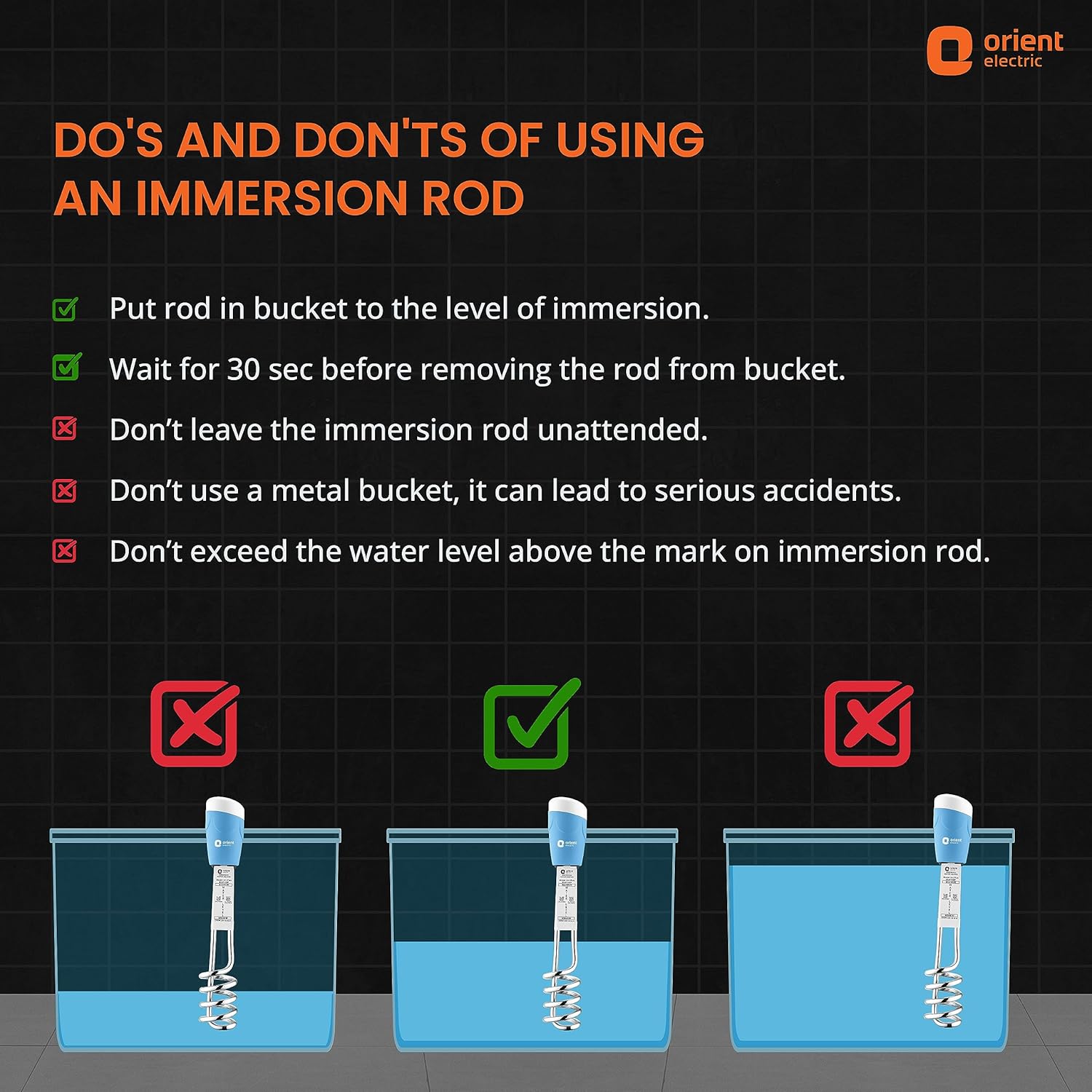Orient Electric Arc Plus 1.5kw |Immersion water heater|100% shock proof body|Heavy copper element|With Bucket clip| ISI certified | 2 years replacement warranty
