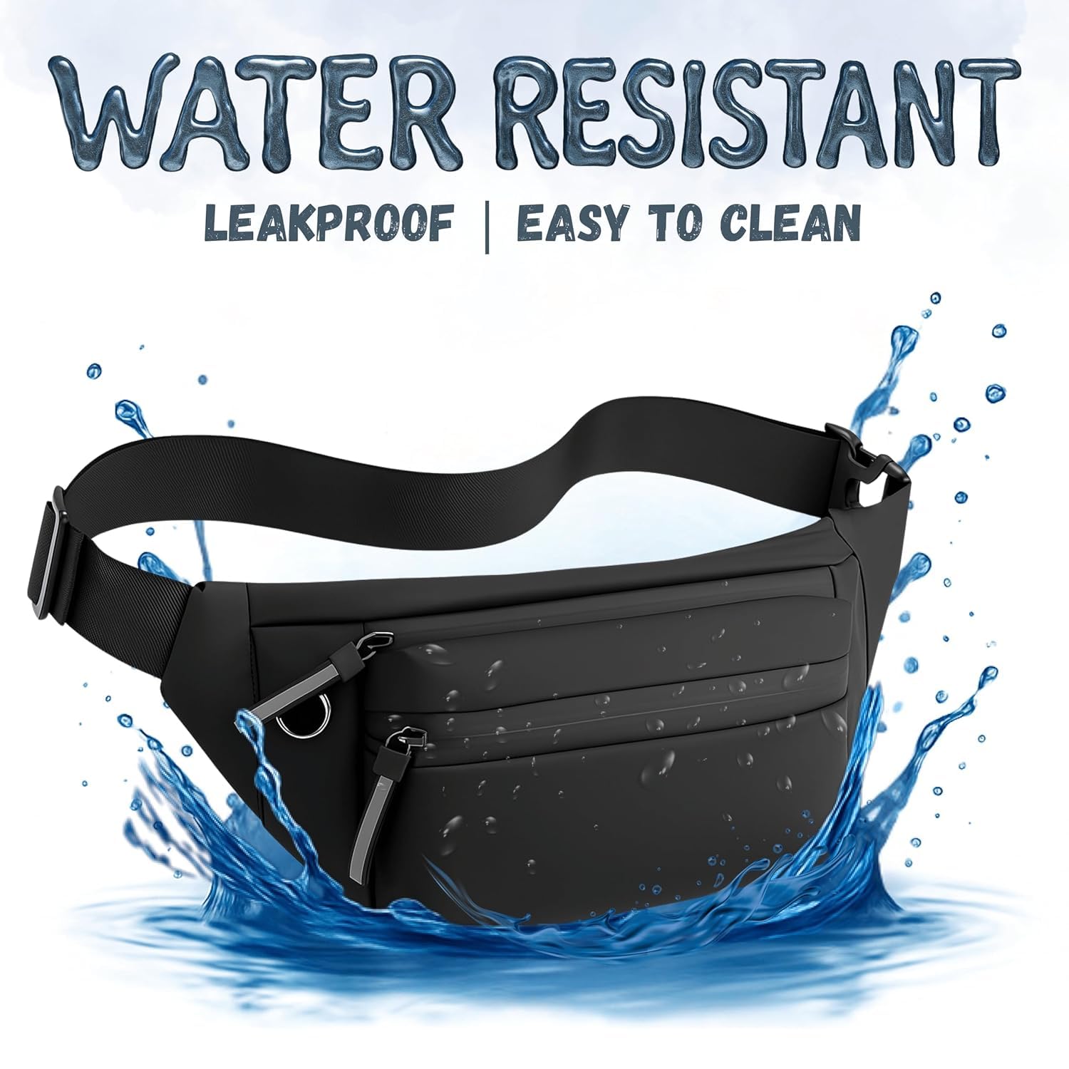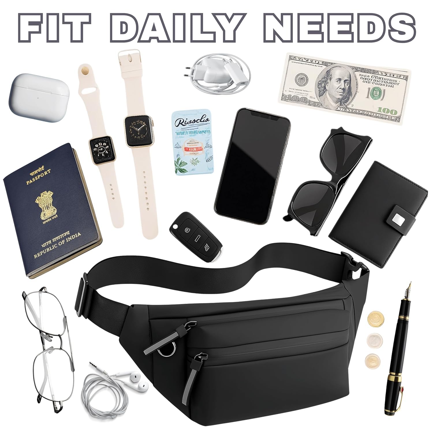 Panchhi Store Waist Bag for Men Side Bag 2 Zip Pockets Fanny Pack Fashion Waist Packs with Adjustable Belt – Travel Essentials Side Bag with Headphone Hole and Reflective Strip for Outdoor Sport