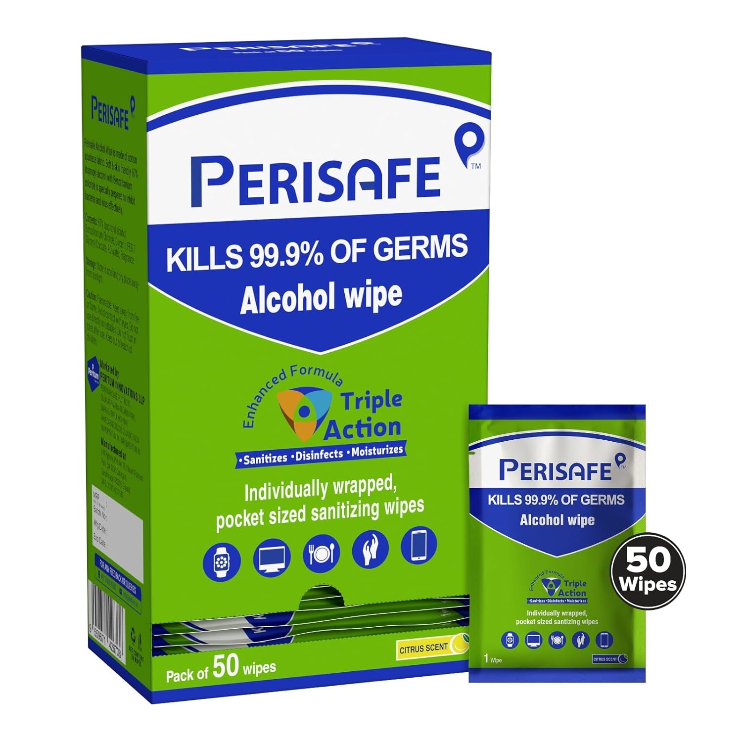 Perisafe Sanitizing Wipes leaves behind Fresh and Pleasant Lemon fragrance enabling to disinfect and eliminate bad odor