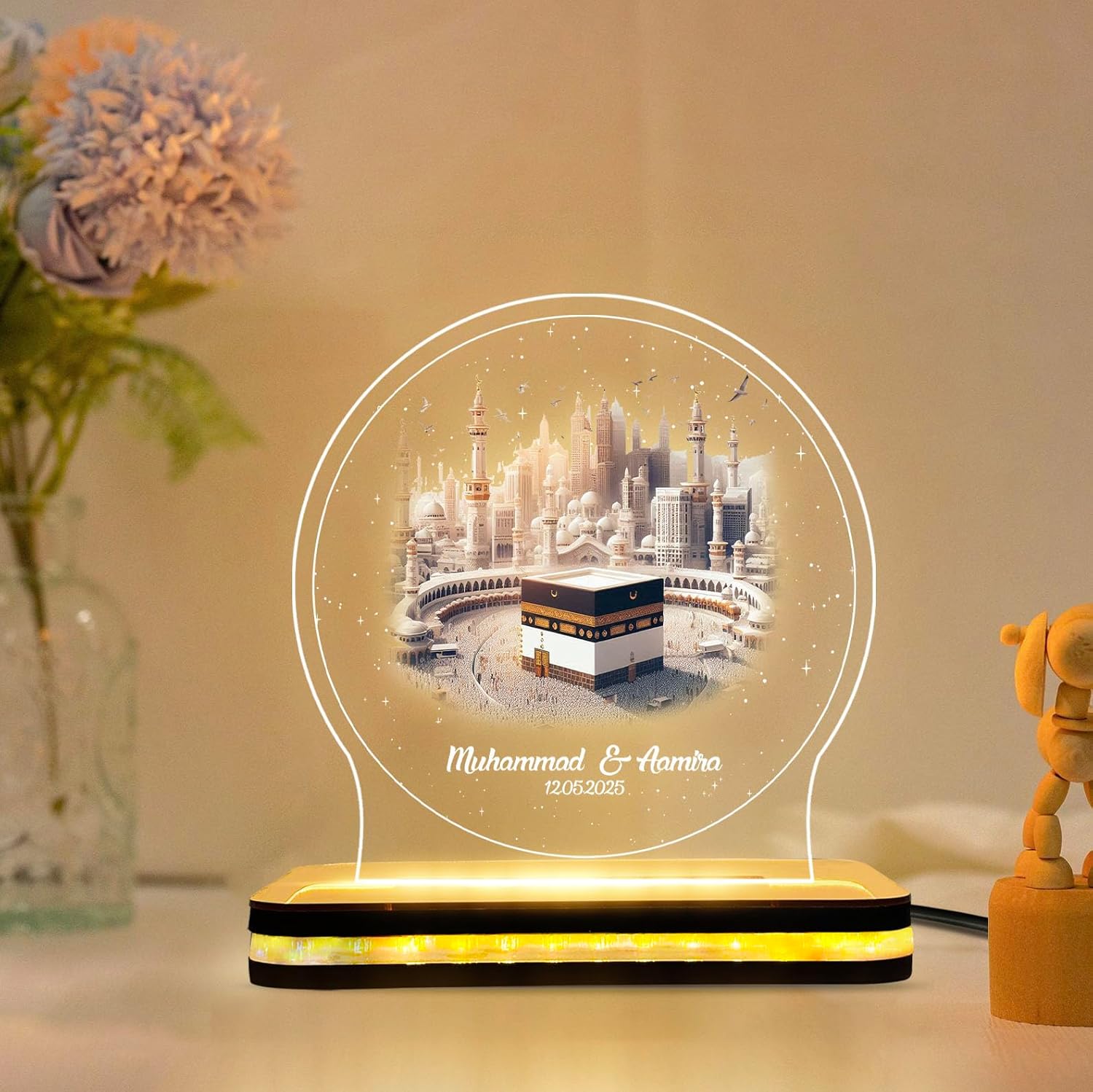 PERSONALIZED NAME NIGHT LAMP: Islamic Plaque for Muslim Couple LED table lamp with your name or a special message, making it a unique gift for any occasion.