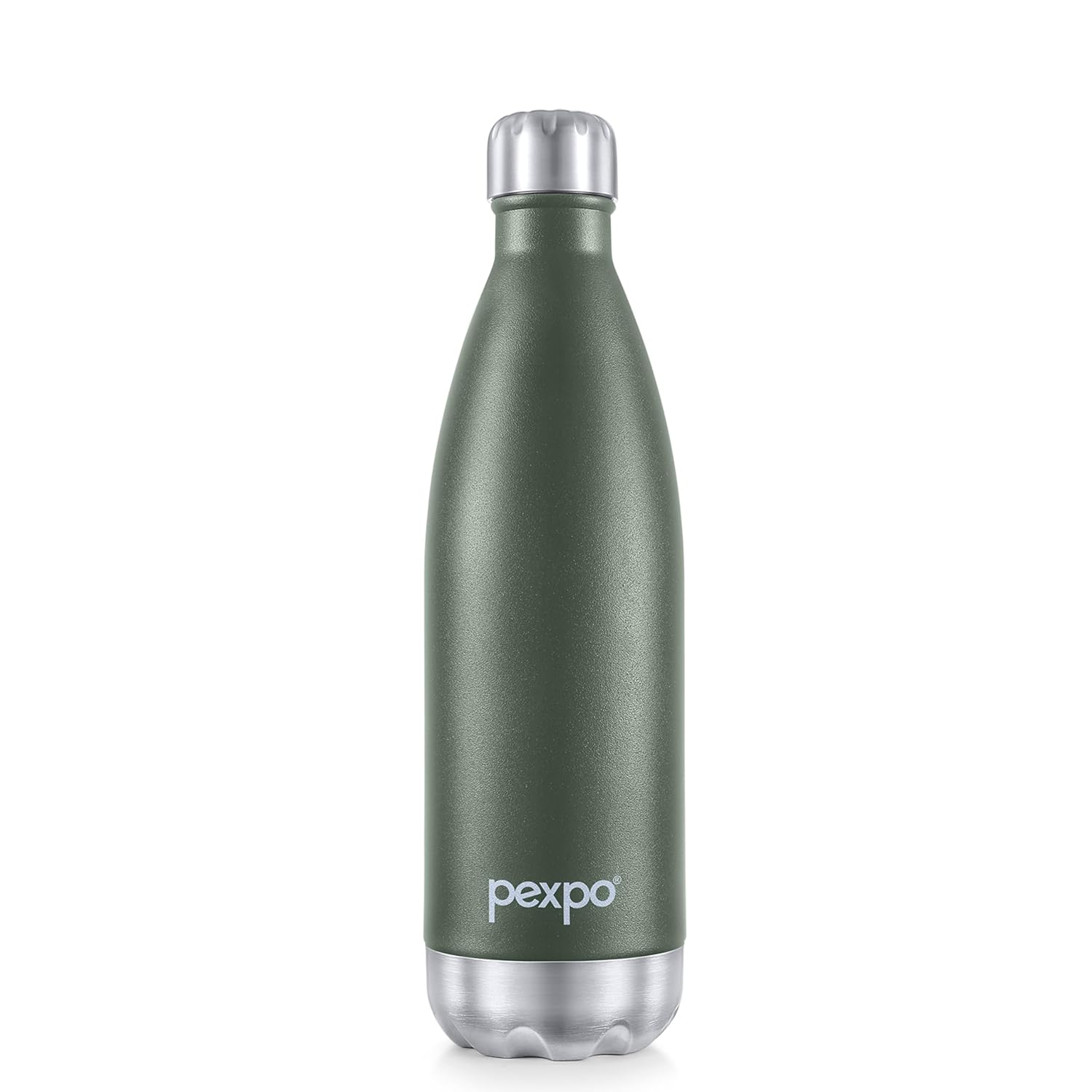 Pexpo Water Bottle 1 LTR| Hot and Cold Flask | ISI Certified Stainless Steel | 3 Layer Insulation | Leakproof | for Home, Office | 2-Year Warranty | Electro 980ml | Military Green