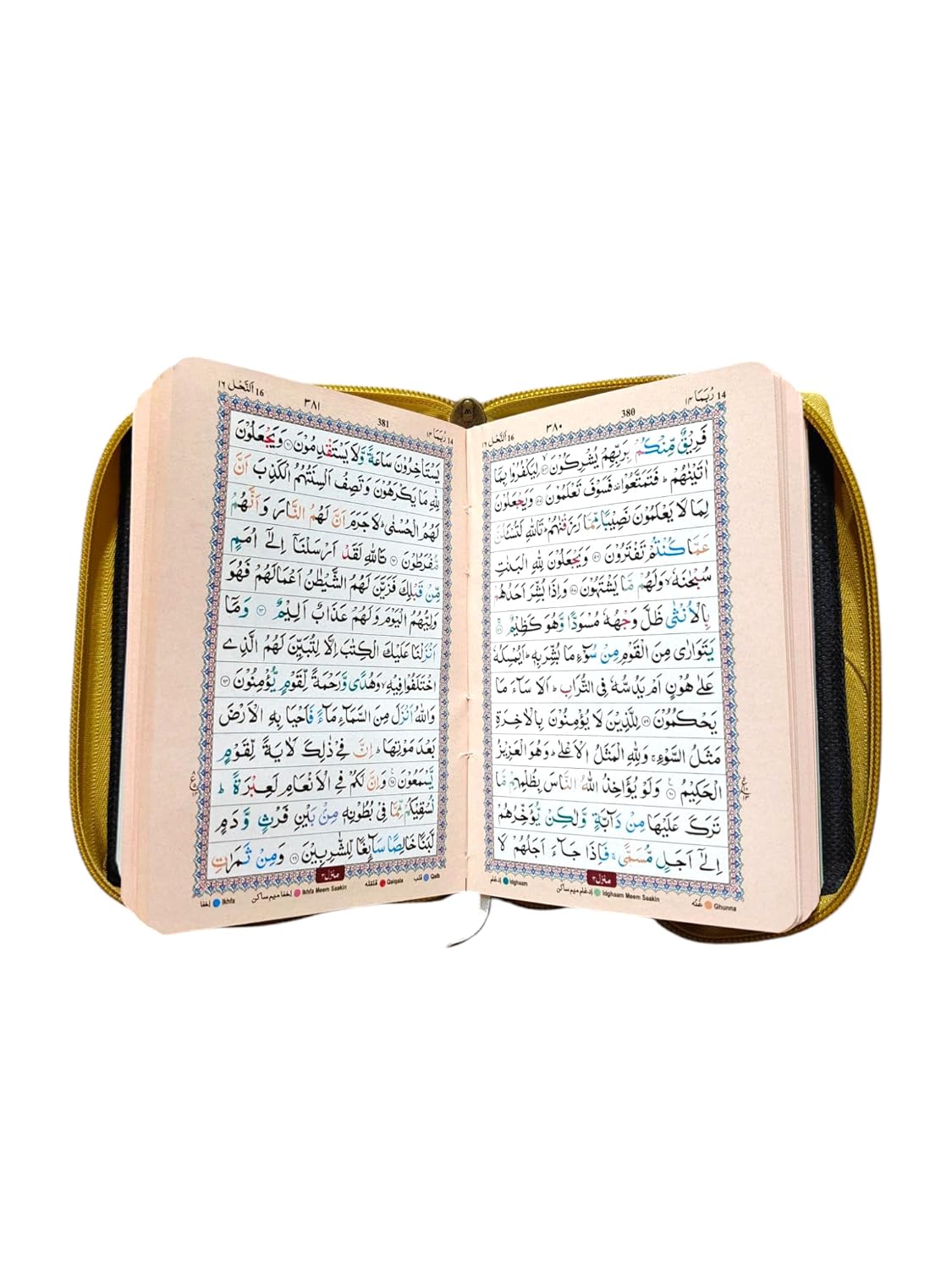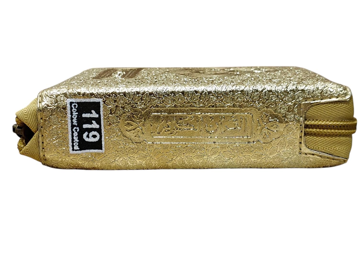 Pocket Quran with Zipper – Compact Arabic Quran, Golden Hardcover, Ideal for Hifz & Daily Reading