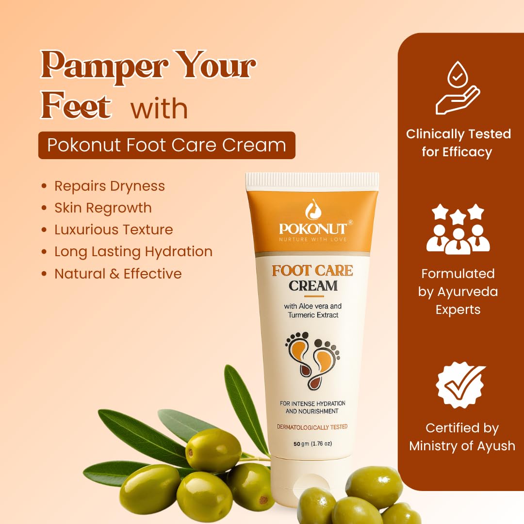 POKONUT – nurture with love Foot Care Cream For Dry And Cracked Heels | Aloe Vera And Turmeric Extract (50 G) | Moisturizes And Repair Feet | Intense Hydration And Nourishment For Women, Men