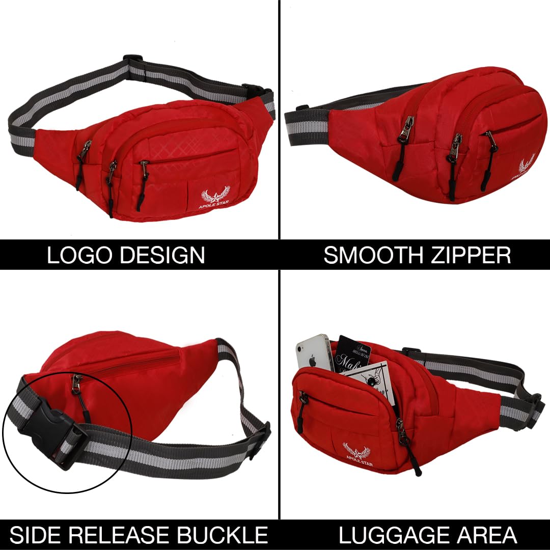 Polyester Waist Pack Travel Handy Hiking Zip Pouch Document Money Phone Belt Sport Bag for Men and Women and Adult | Red- Waist Bag