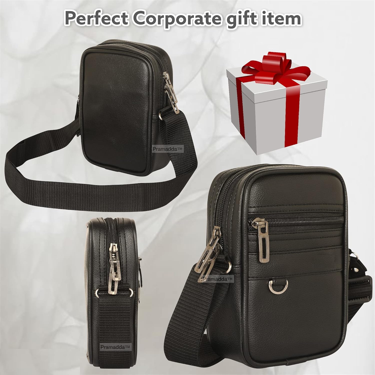 Pramadda Pure Luxury Gloss Leather Small Sling Bag for Men | Chest Slinger bag | Crossbody Bag| Side Bag Men | Mini Leather Slings | Corporate Gift Item | Passport Sling.