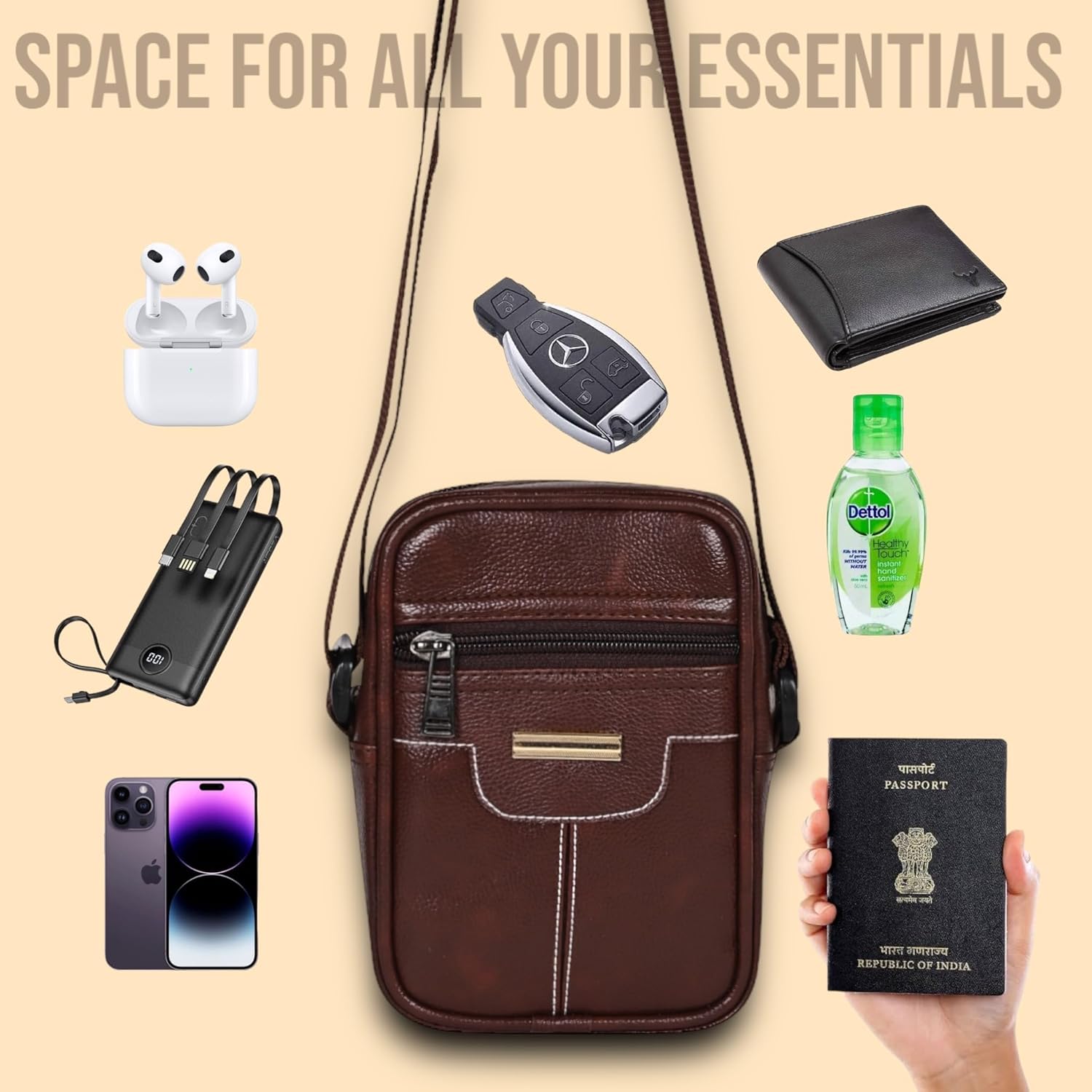 Pramadda Pure Luxury Trendy Milan SMALL Leather Sling Bag for Men Women | Classic Chest Slinger | Mobile Pocket Sling Bags for passport documents essential items| corporate gifts items.