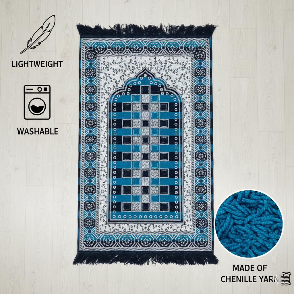 Prayer Mat for Men and Women Soft Lightweight Namaz Rug with Anti Slip Base Washable Foldable Prayer Carpet for Home Mosque Travel (Blue)