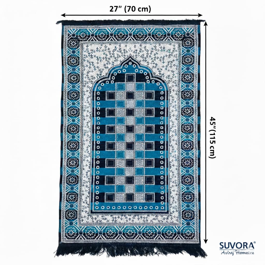 Enhance your daily prayers with the SUVORA Prayer Mat for Namaz, designed to provide superior comfort, convenience, and durability. Crafted with a soft and smooth fabric, this lightweight Janamaz rug offers a gentle feel on the skin, making it perfect for long prayer sessions at home, mosque, or while traveling. The mat features an anti-slip base, ensuring a stable and secure grip on all types of flooring, so you can focus on your prayers without distractions. Its foldable and portable design makes it easy to carry in your bag, ideal for people on the go. Whether you’re at work, on a journey, or visiting a mosque, this travel-friendly prayer mat ensures you never miss your prayers. Made with high-quality, breathable material, the SUVORA prayer carpet is suitable for all seasons and is especially comfortable during daily use. It is also easy to clean and washable, maintaining hygiene and freshness over time. With a blend of functionality, comfort, and elegant design, this prayer mat is a must-have essential for every Muslim household and also makes a thoughtful gift for loved ones during Ramadan and other special occasions.