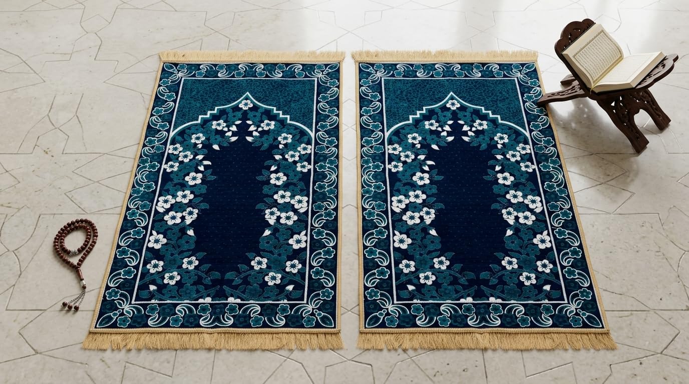 Premium Velvet Janamaz – Ultra Soft 4 x 2 feet Large Prayer Mat for Namaz | Luxury Islamic Gift Washable Foldable Travel Muslim Sajadah Rug for Living Room & Bedroom (2, Blue)
