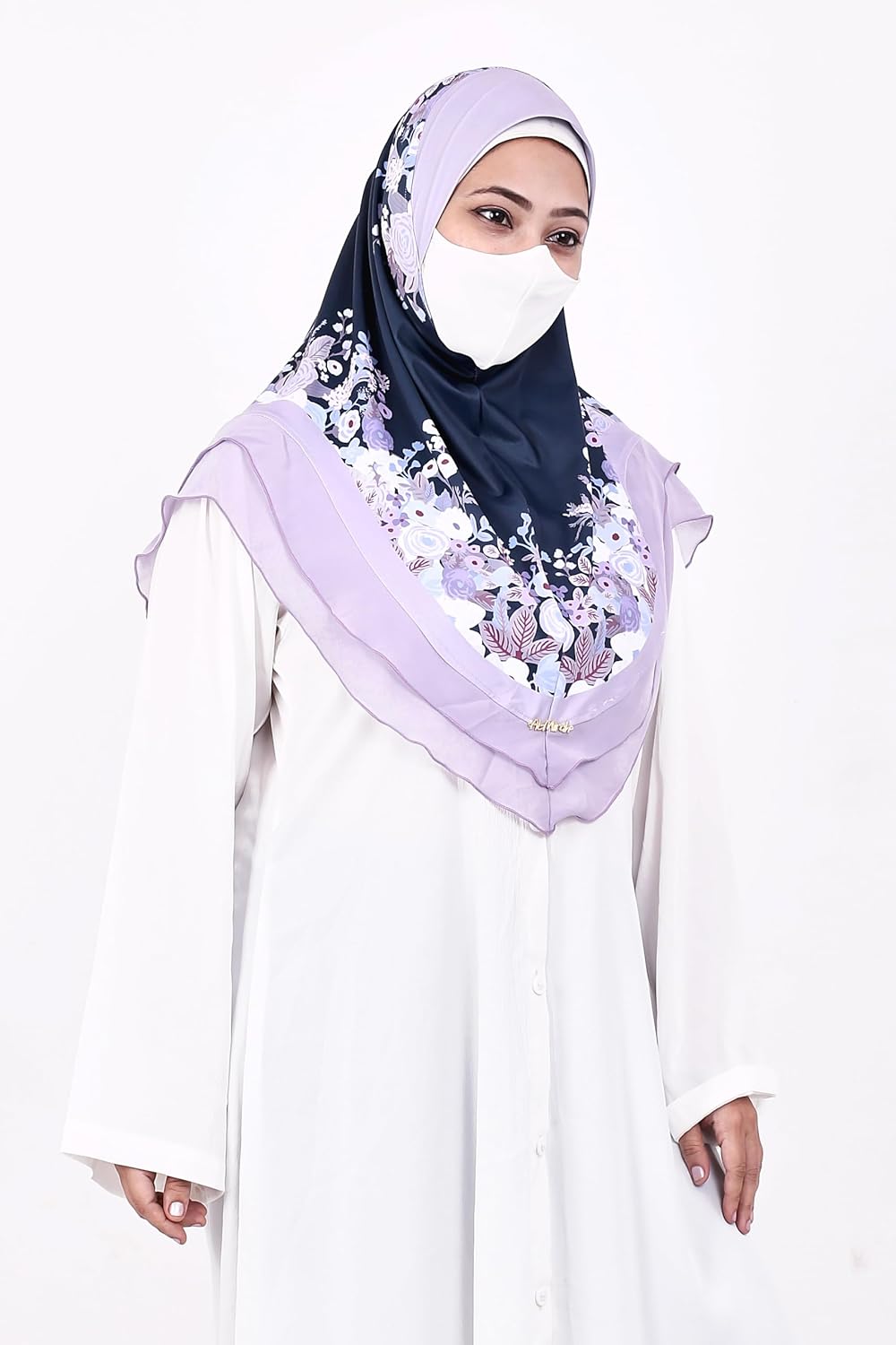 Printed Malaysian Instant Hijab for Women | Floral Border Design | Ready to Wear Modest Fashion Headscarf | Elegant Muslimah Style for Daily, Festive & Occasion Use