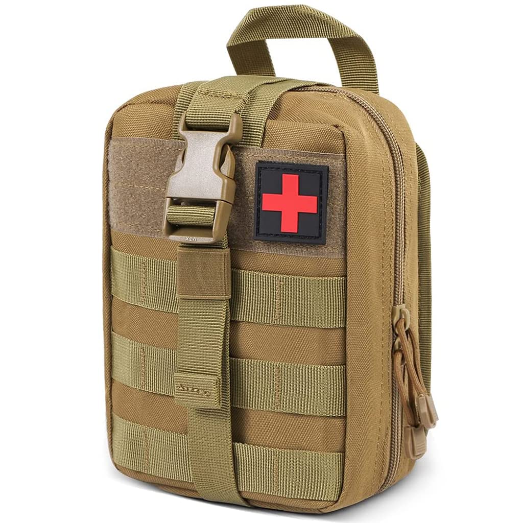PROBEROS® Nylon First Aid Pouch for Medical Emergency Kit, Heavy Duty and Large Capacity Military Grade Rip-Away Ifak Pouch for Sports, Hiking, Camping, Traveling (Bag Only), Brown