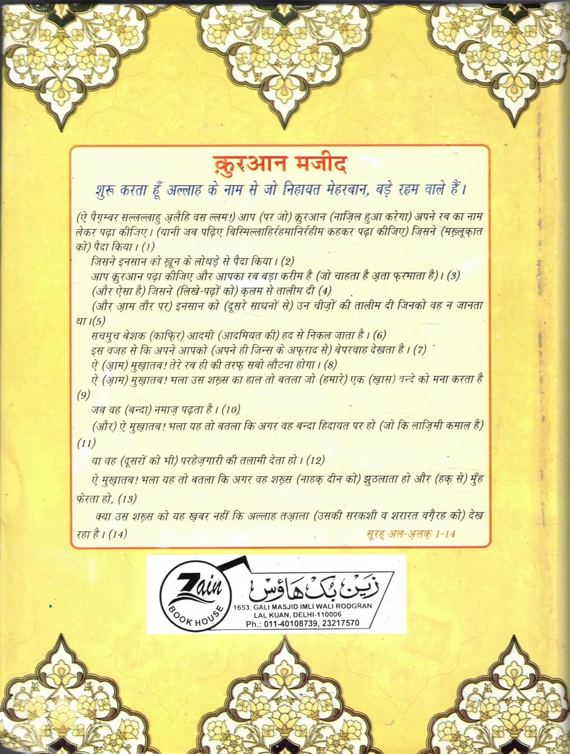 Quran Majeed – Arabic Text with Hindi Translation by Hazrat Maulana Ashraf Ali Thanvi (Rah.) is one of the most authentic and revered Hindi translations of the Holy Quran (Al-Qur’an Sharif). This sacred edition presents the original Arabic text alongside a clear, faithful Hindi translation and tafsir (explanation), allowing readers to understand the divine guidance of Almighty Allah in their native language. Hazrat Maulana Ashraf Ali Thanvi (Rah.), a renowned Islamic scholar and Sufi saint, has translated and explained each ayah (verse) with spiritual depth and clarity, highlighting the moral, ethical, and spiritual lessons of Islam. This edition helps believers understand the true message of peace, mercy, and righteousness revealed to Prophet Muhammad ﷺ. Beautifully printed in Arabic–Hindi parallel format, this Quran Sharif is perfect for daily recitation, study circles, and interfaith understanding.