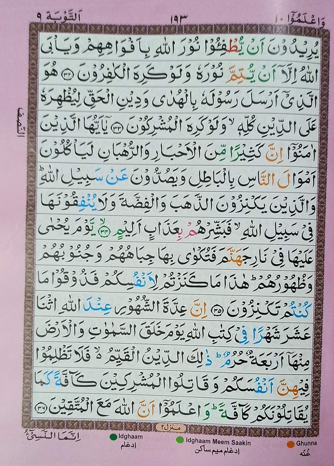 Quran Majid Multi Colour Tajweed 5 Star Art paper 7×10 in