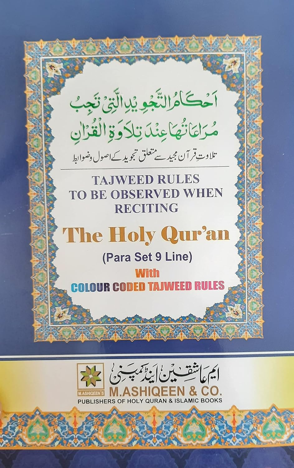 Quran Para Set 9Line With Colour Coded Tajweed Rules With Bag (FREE one book which explains you how to read with Tajweed Rules by help of colour coding)