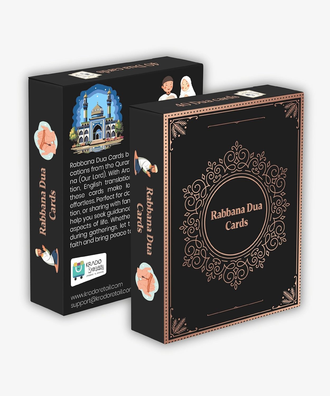 Rabbana Dua Cards bring you 40 powerful supplications from the Quran, each starting with Rabbana (Our Lord). With Arabic text, Roman transliteration, English translation, and Quranic references, these cards make learning and reciting duas effortless. Perfect for daily prayers, personal reflection, or sharing with family and friends, these cards help you seek guidance, mercy, and blessings in all aspects of life. Whether at home, on a journey, or during gatherings, let these duas strengthen your faith and bring peace to your heart.
