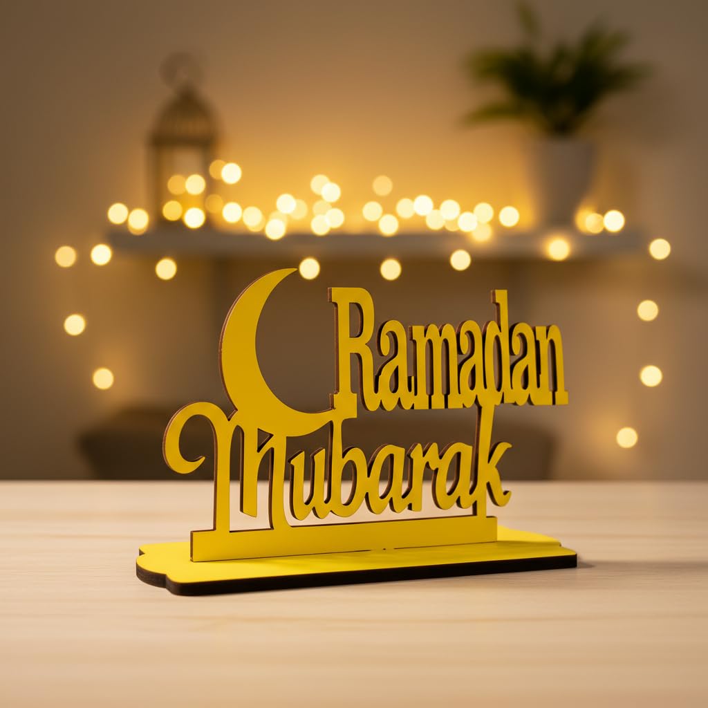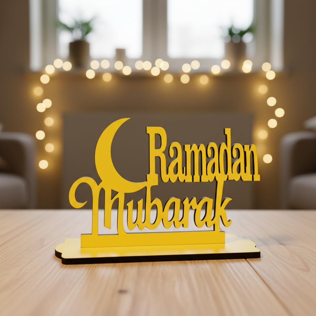 Ramadan Mubarak 3D Wooden Showpiece Table Decor, Islamic Festival Ornament, Eid Al-Fitr Holiday Decoration Items for Home, living room – Eid mubarak decoration items (RKM-37)