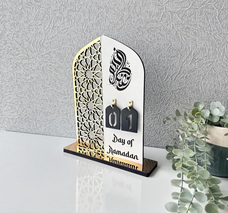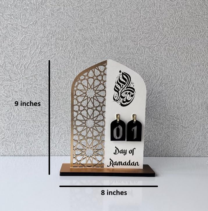 Ramadan Mubarak Calendar Decorations, 30-Day Countdown Calendar, Islamic Table Decor, Acrylic Material, 9 Inches Height