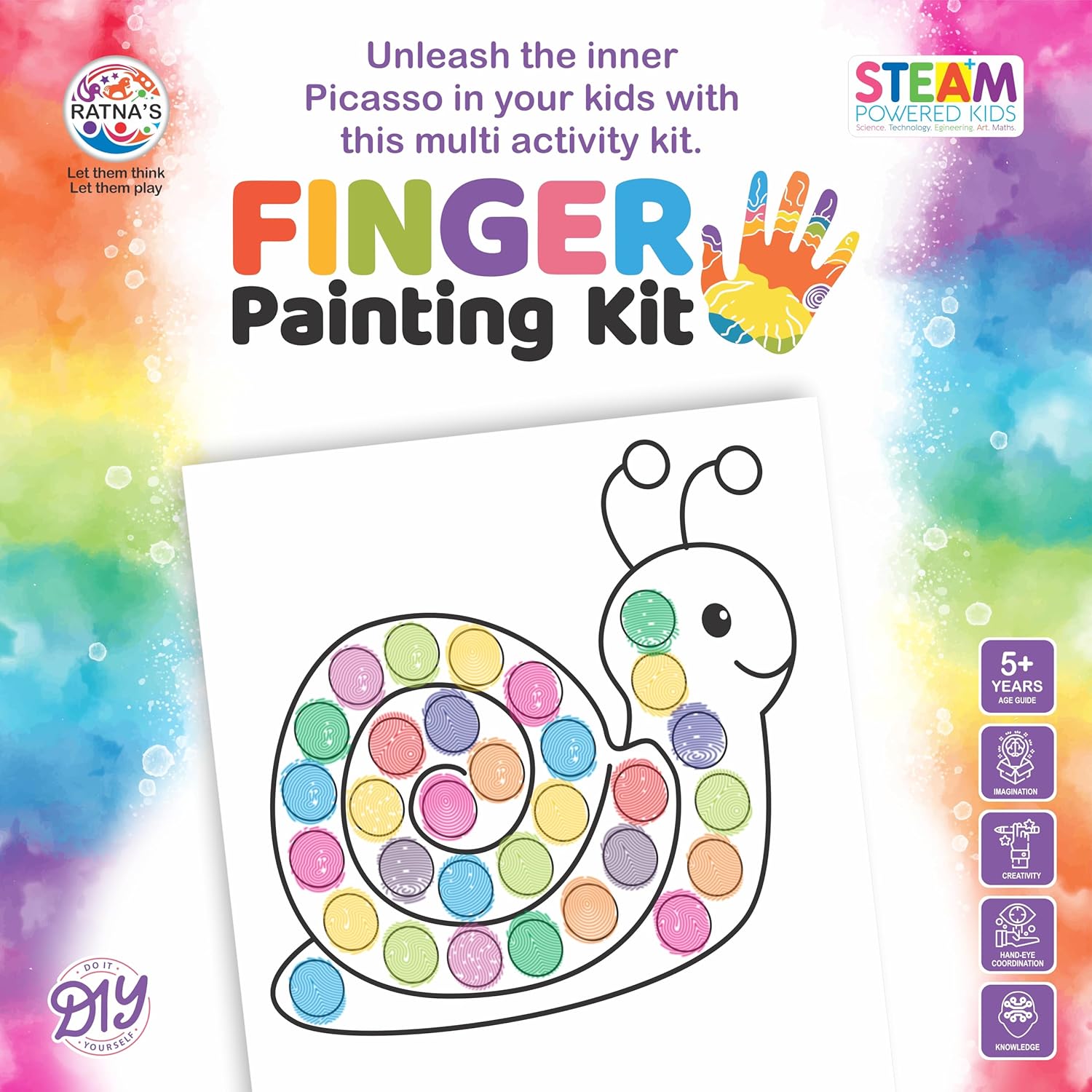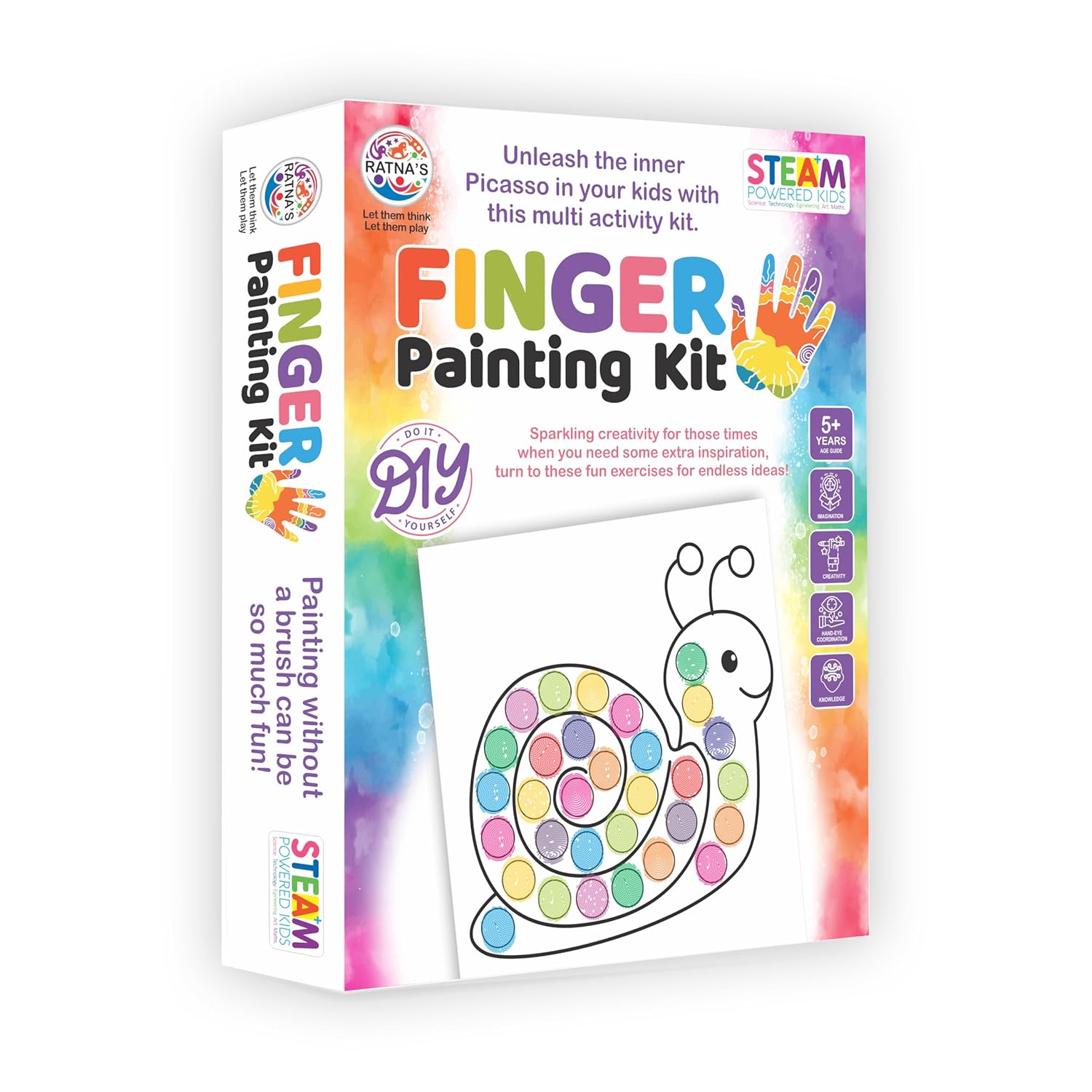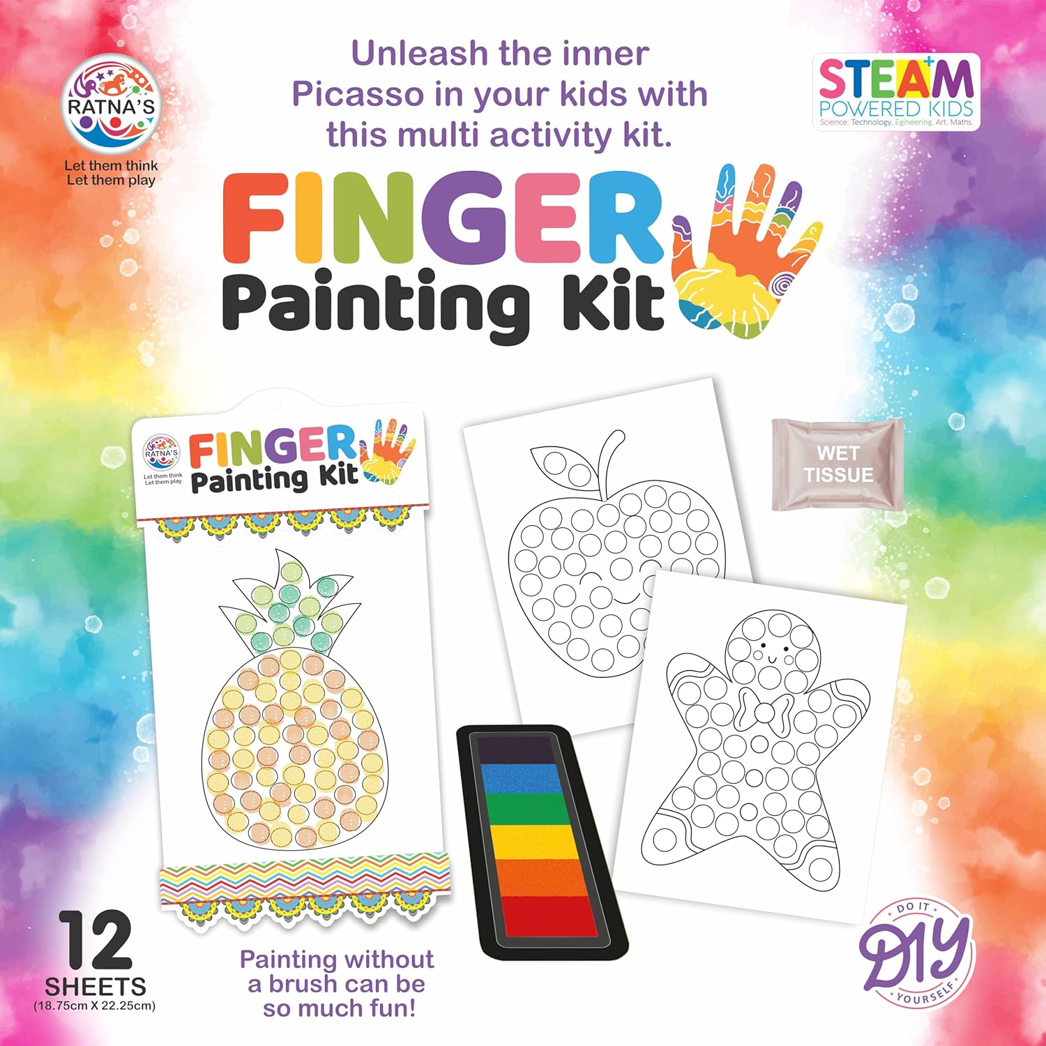 RATNA’S Finger Painting Kit STEAM Learning, 12 Sheets with 6 Colour Tray, DIY Coloring Hand Paint Art and Craft Activity Set for Kids
