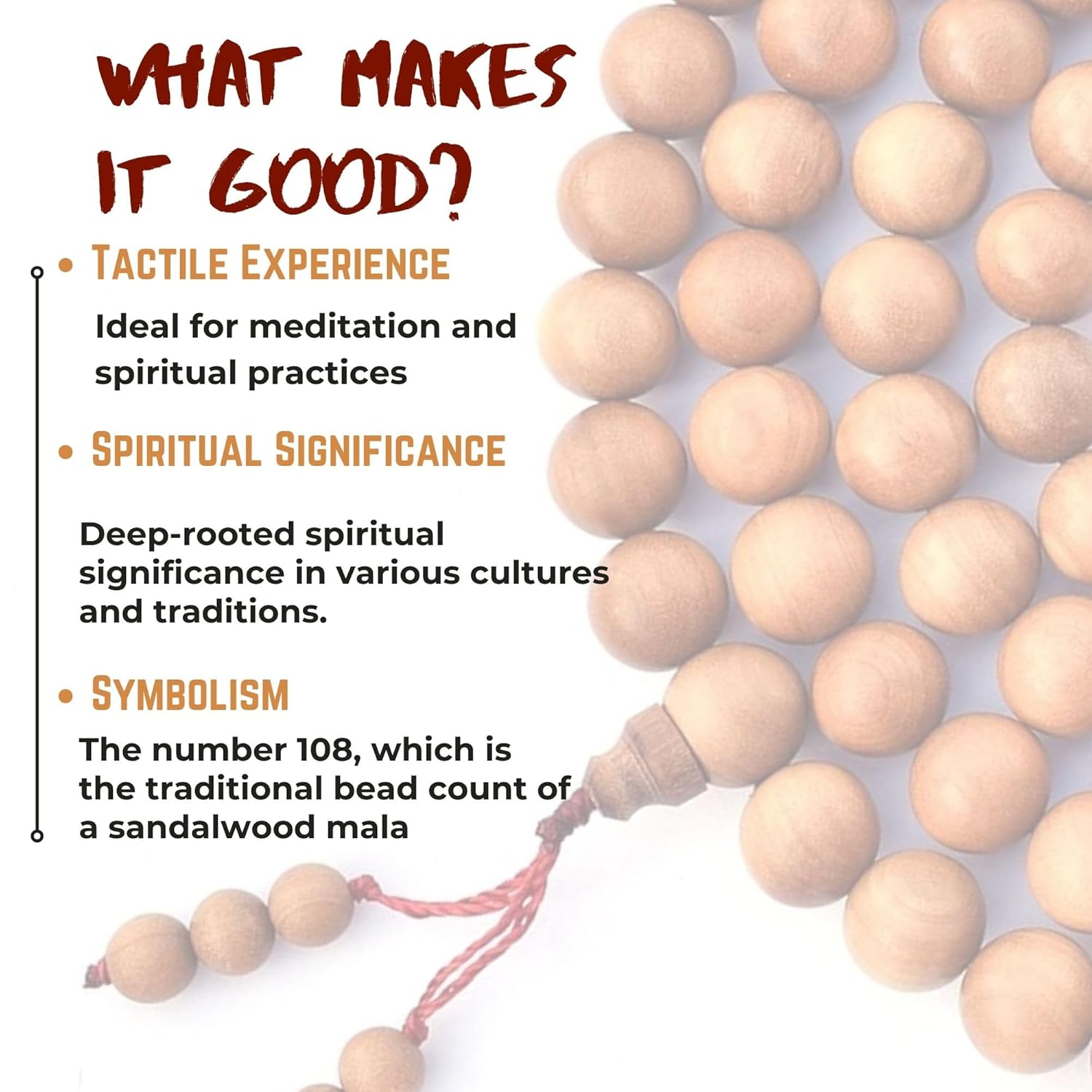 Material: Sandalwood Beads, Size: Bead size: 6 mm, Number of prayer Beads – 108